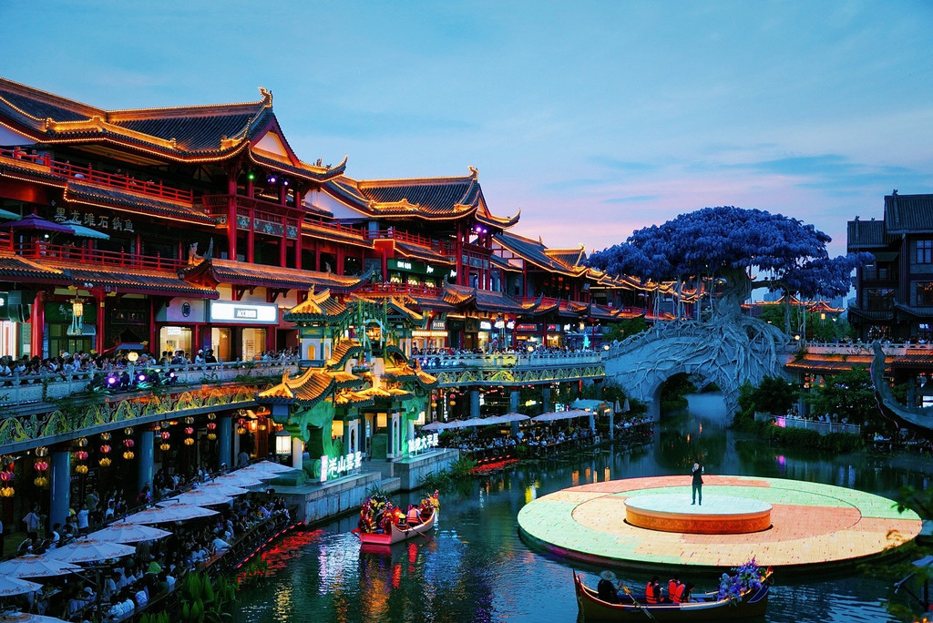 巨型精灵之树,被木筏、花灯环顾,大宋盛世的繁华在这里一一呈现,亭台楼阁间的灯火辉煌,仿佛梦回千年。