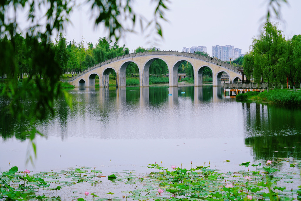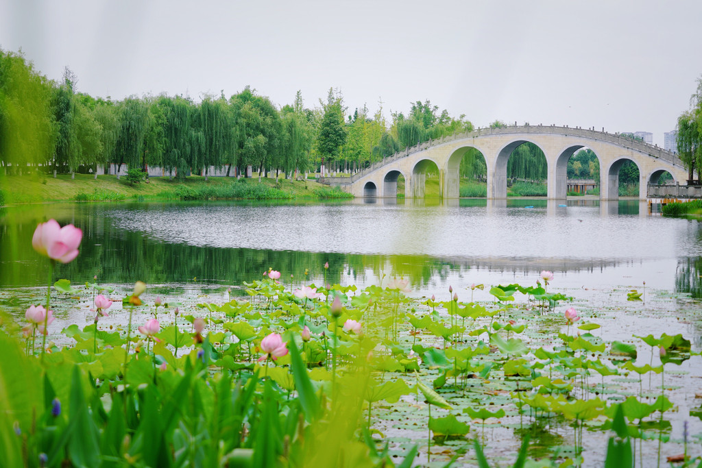夏天是误入藕花深处,争渡,争渡,惊起一湾欧鹭。六月夏至已至,正是欣赏荷花的好时节。在眉山东坡区,发展了一隅,欣赏荷花的幽静,既有古色古香渡亭台楼阁,又有独具现在艺术气息的“水下观景”,网红杉林迷宫、 优美的石拱桥等。这里就是眉山东坡城市湿地公园,一处周末出游的宝藏旅行地。
