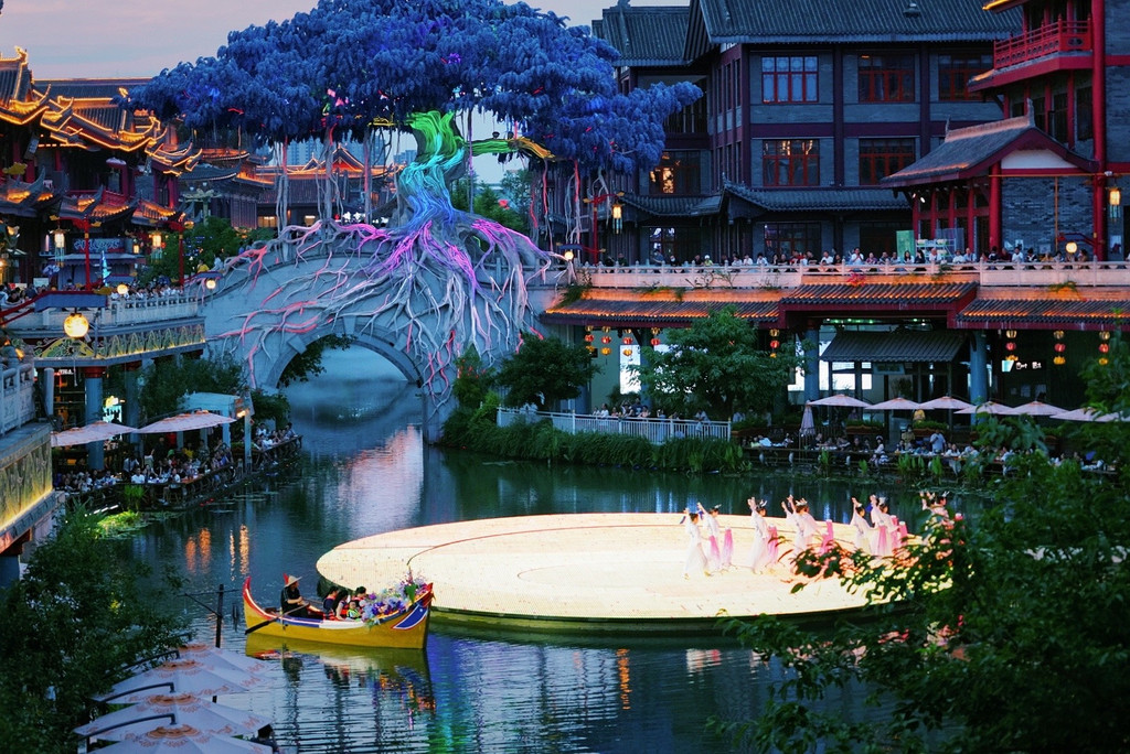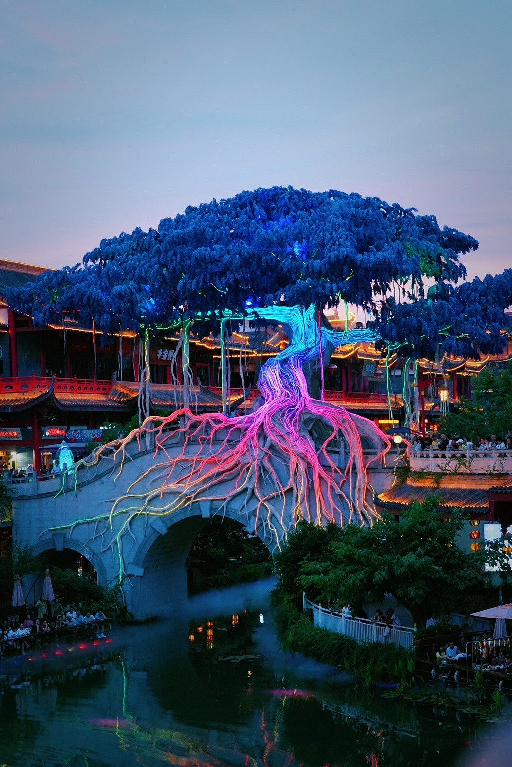 千年盛世,梦回大宋城,时空之旅,总有惊喜。灯火璀璨,精灵之树,河畔表演,生动的复刻了那个繁荣昌盛的大宋。