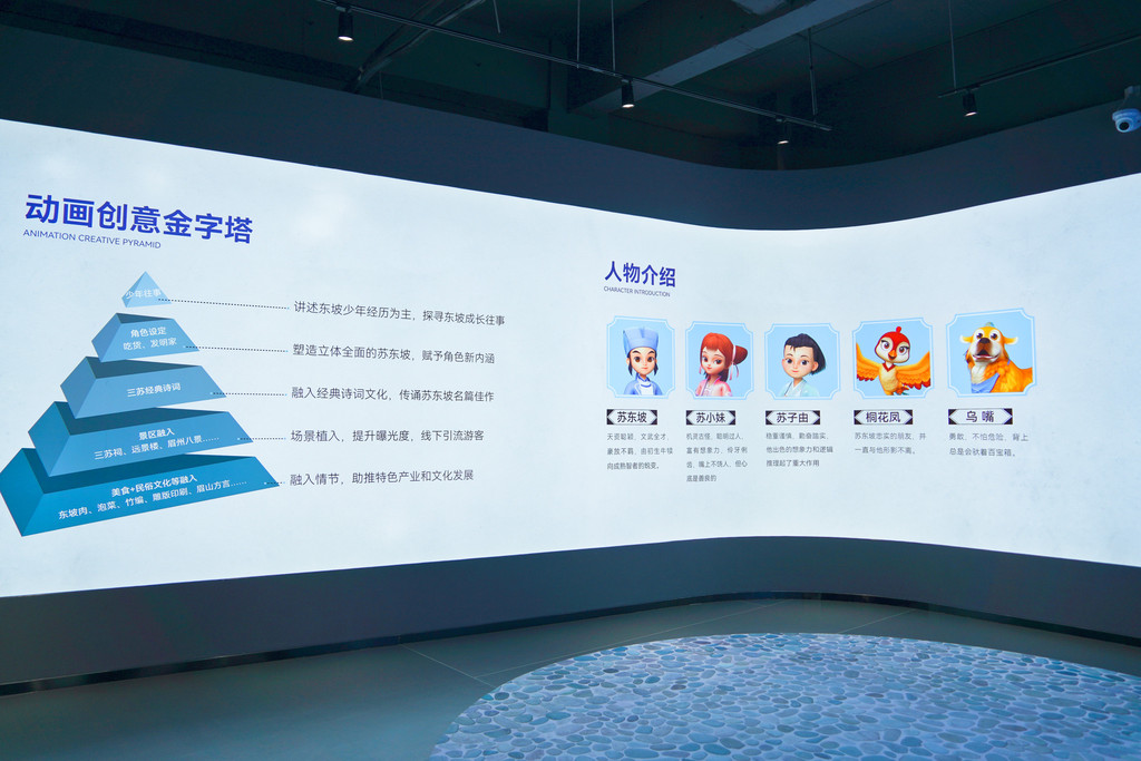 在园区里还能一博少年苏东坡的风采。少年苏东坡的文化IP制作就藏在眉山樱花博览园的园区北面,这里临近小湖,风景独好。在场馆里陈列了许多有关少年苏东坡的文创产品。这位“虚拟又真实”的时代红人,倘若生活在当下,又会发生怎样奇妙的故事呢?答案就在动漫《少年苏东坡》中。
