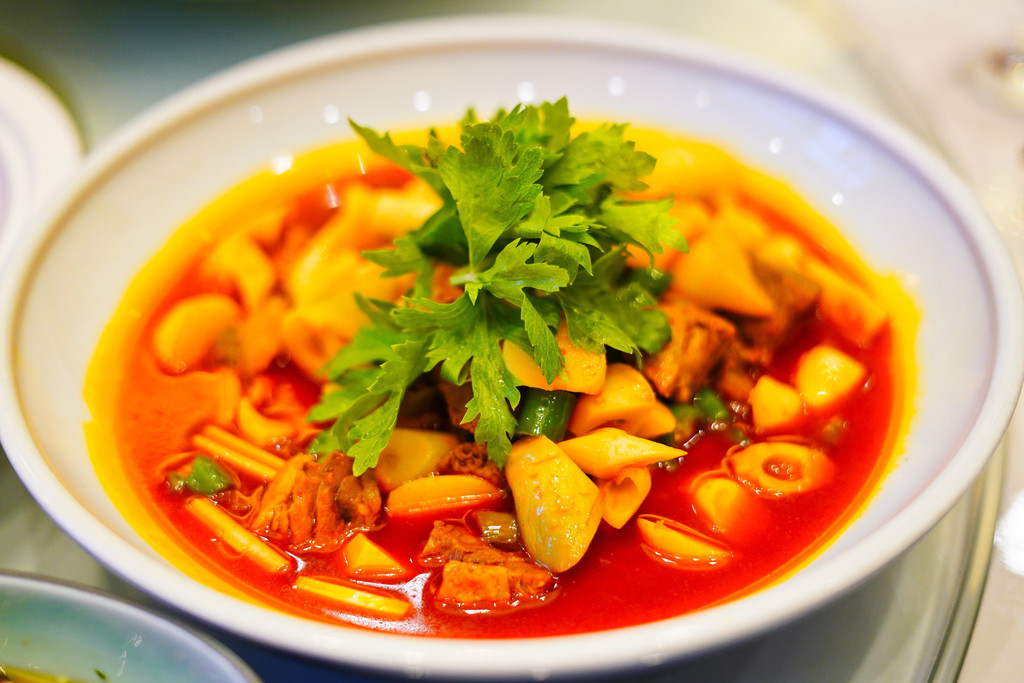 来到这里一定要试试软糯生香的东坡肘子,爽脆解腻的泡菜,独具乐山风味的甜皮鸭,以及色香味俱全的烤鸭,此外还有回味无穷的回锅肉、四川特色腊肉香肠等都值得一试,口味具佳。这里的餐具都融入了国宝大熊猫的元素,雅致的包厢,还有竹林院坝的户外用餐区,都极为优美。吃的不仅是味道,还有独具书香气的环境,这样的宝藏川菜馆,来眉山旅游一定不能错过。