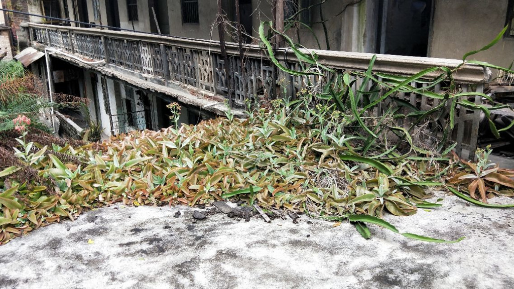 有栋厂房的二楼长了草,开出了很漂亮的花。