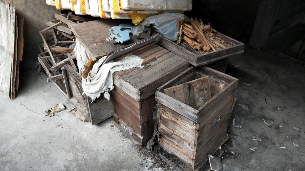 部分厂房已倒塌,树已有六七米高,有些地方种了一些青菜。