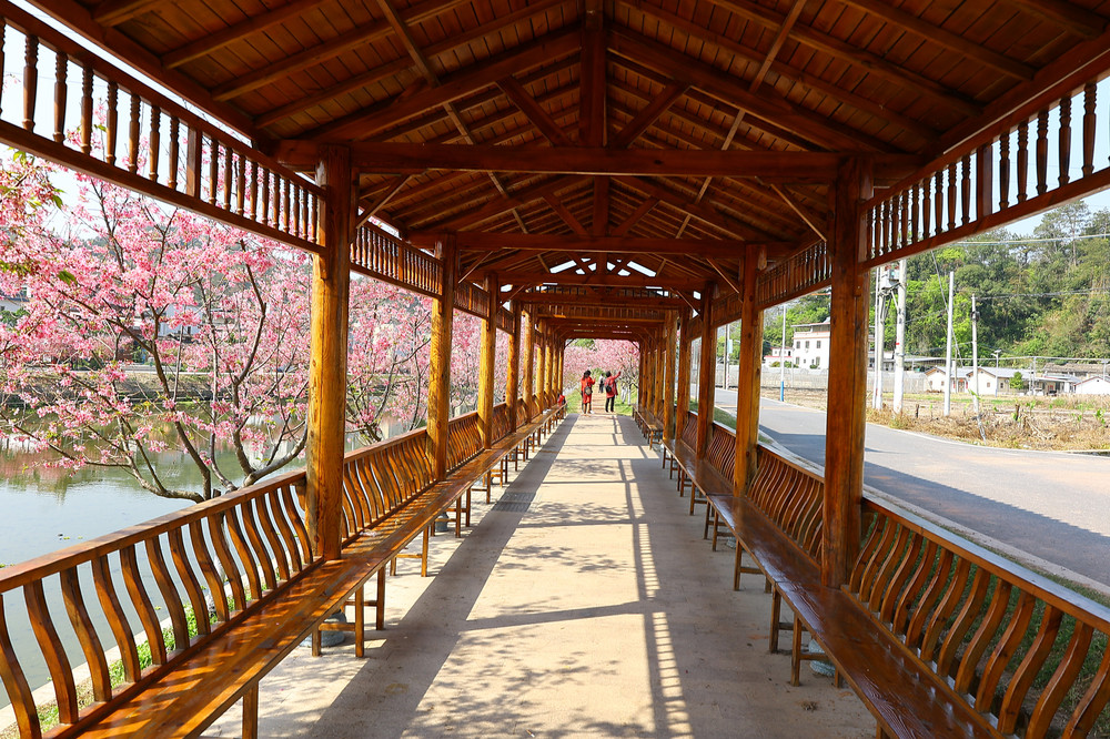 从白宫圩沿S333省道往东(大埔方向)走1公里后右转,再走200多米即可看到河畔的樱花。
