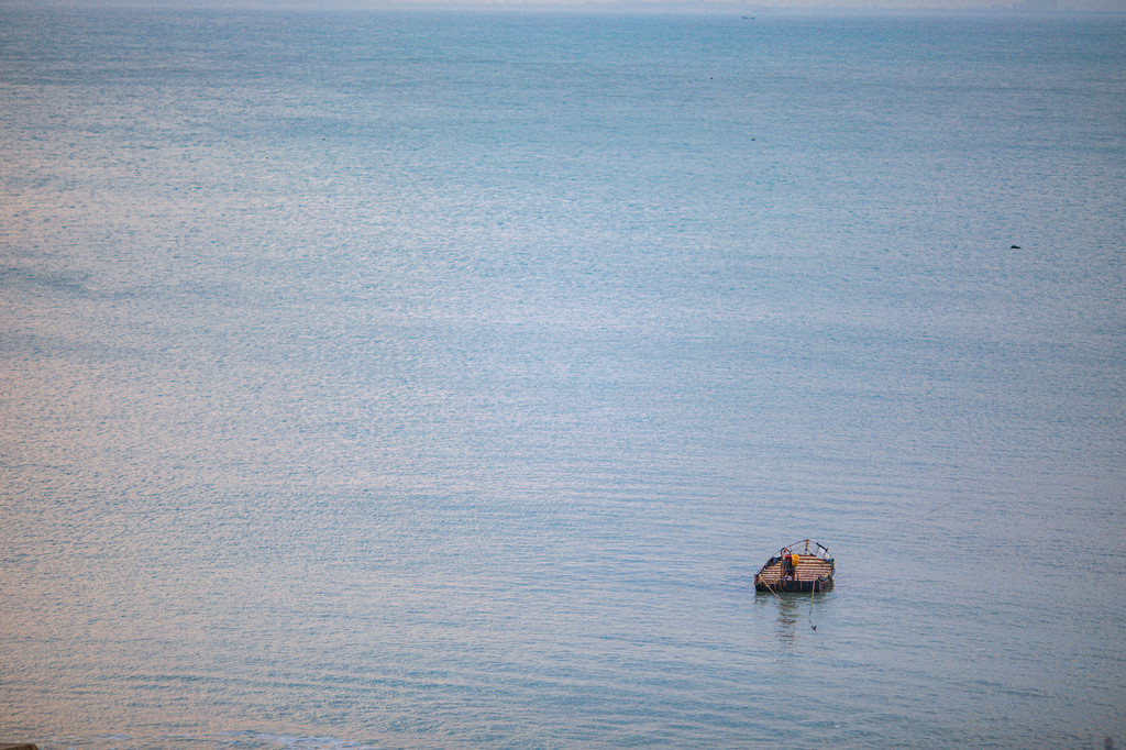 湄洲岛在秋冬之时,天气格外的通透,视线里除了大海蓝天,就是远处的一艘艘渔船。