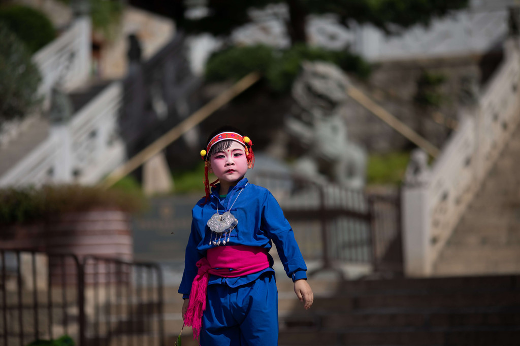 祖庙的门口很热闹,一打听,是一族人在自发祭祀妈祖,女子着红衣梳妈祖头,男子着蓝袍,果然是自古红蓝出CP。
