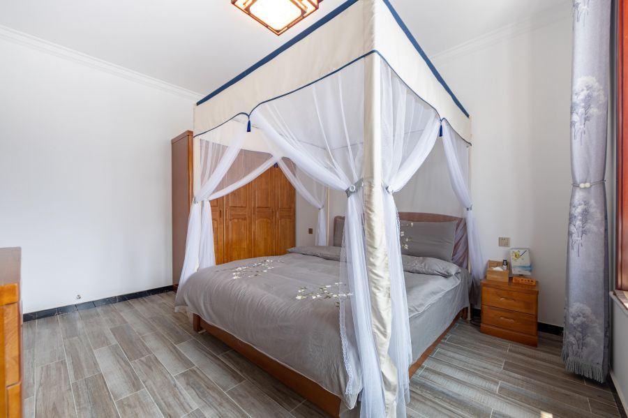 室内的生活用品设施全套,在这里生活的每一天都是圆满方便的,轻纱幔帐的宽敞房间附有别样的情调,每间都有30平米以上的面积。