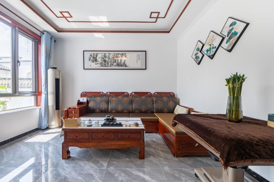 民宿是正宗的徽派院子建筑风格,白墙灰瓦,琉璃飞檐,徽式建筑的保守风格元素完美地体现在这一方庭院当中。高墙之内的私密空间是入住客人的私密世界。