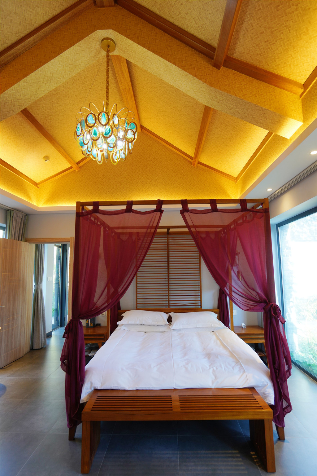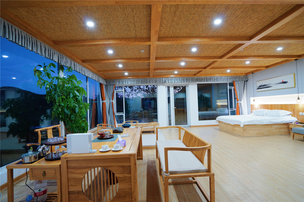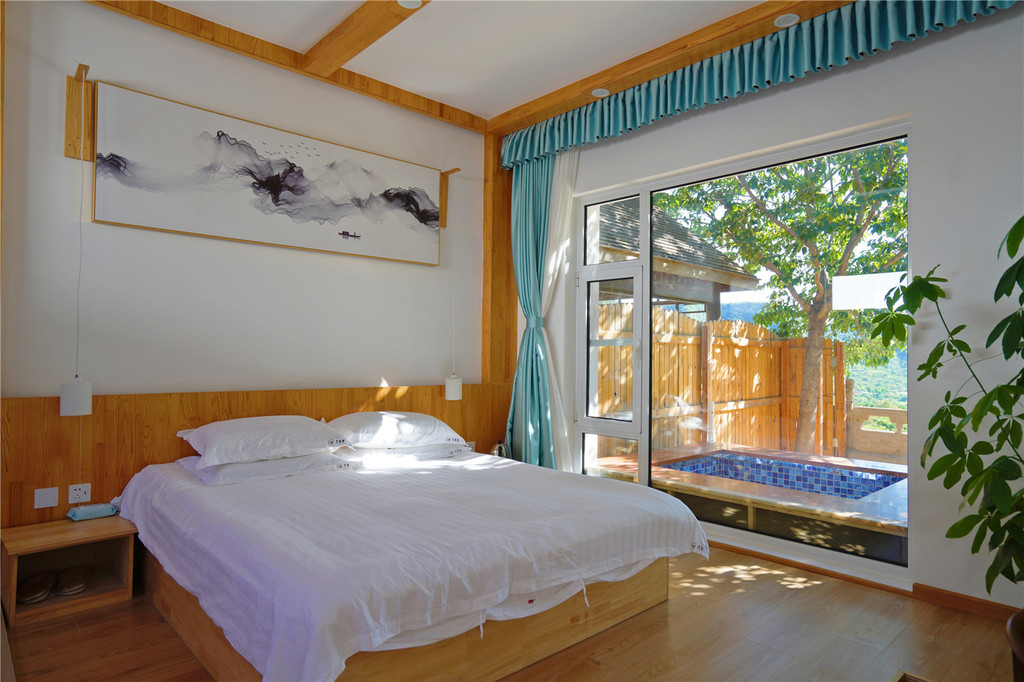 这是一个藏在山中的精致民宿,每一个房间的布置设计都很有特色,我们选了修心大床房,房间非常大,一进去就让人眼前一亮,赏景不要太美哦!