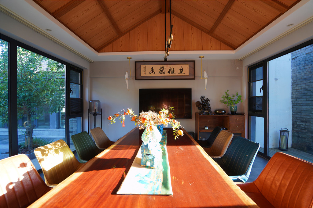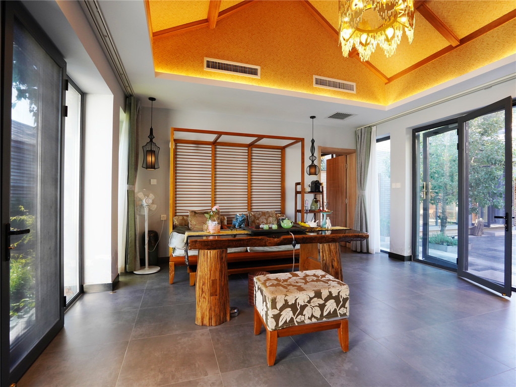 有五个大房间,每个房间都带私汤,主卧还自带会客室。2个院落,2个观景台,1间茶室,1间书轩,1间餐厅+吧台,能住10个人。