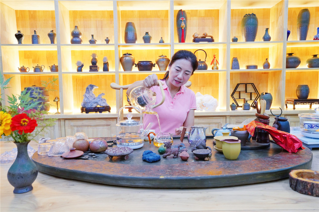 精美的茶具,茶桌,让人耳目一新,泡茶都是用矿泉水,好茶配好水,喝的更健康。