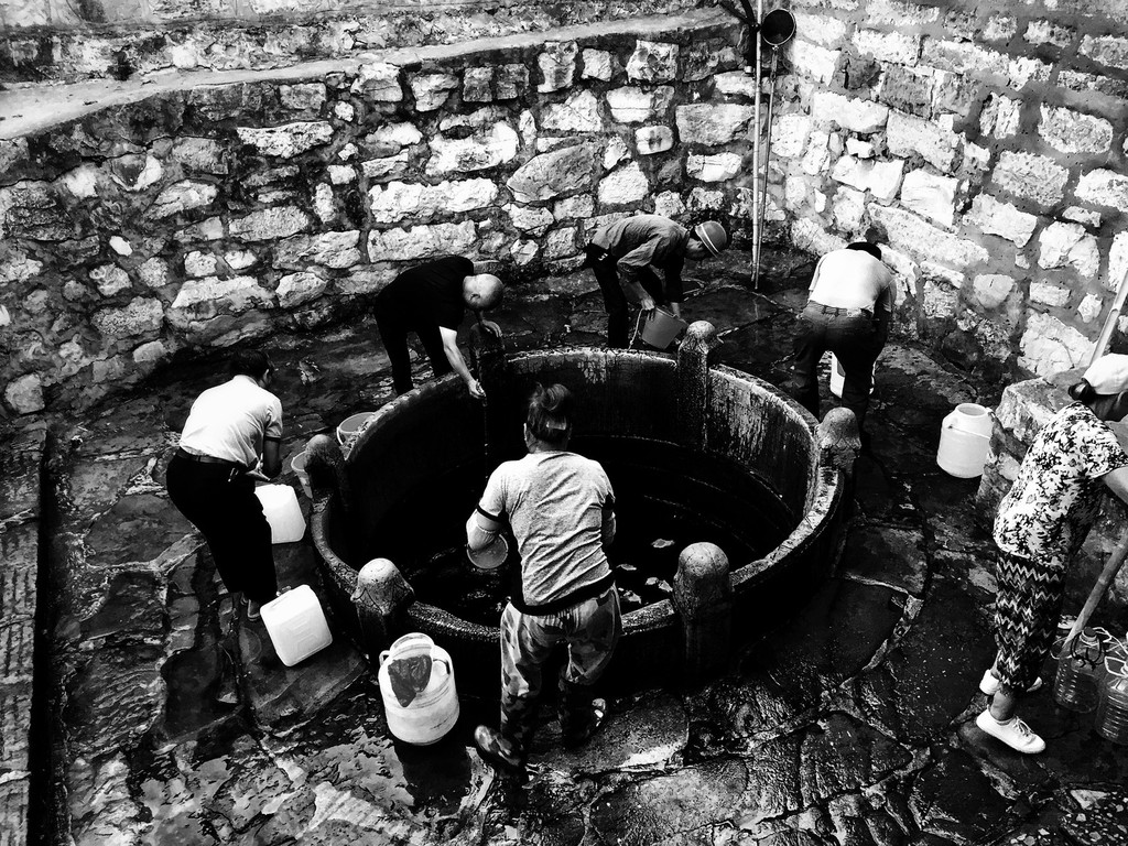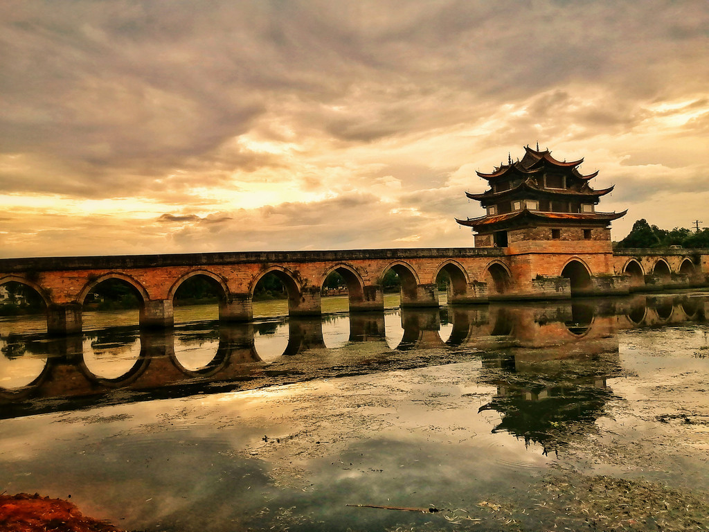 从唐惠历(公元802--826年)南诏国建惠历城至今,古城临安已经漫步1200年的岁月沧桑,走在千年青石铺就的路上,脚步轻扣这岁月的青石,滴答之声仿佛和着朝阳楼那依稀远去的晨钟。当晨阳微曦,那金色的如丝线般一缕一缕的光芒穿过临安城古老的城门洞子,就这么随意的慵懒的斜斜的铺在青石的街道之上。西门外的大板古井又开始了一天的忙碌,古城里的老人们三五成群的来到古井边,或肩挑或手提,就这么闲适的在古城的街道上随着阳光轻柔的摇曳着,耳边仿佛又响起了伴着朝阳晨钟的鸣响,巡城的兵士们那悠长的开市咯的韵唱,于是街市两边的店家便拉开自家的门扉,伴着木质门扉的咿呀,古城内的豆腐作坊飘出淡淡的香甜。西门大板井古称溥博泉,出自《中庸》“溥博渊,而时出之”井口圆形,直径2.7米;高50厘米,厚12米,由六块弧形石板中间用六棵石柱琢槽相扣而成,井水清澈透亮,经久不涸,取而复满。有滇南第一井的美誉。