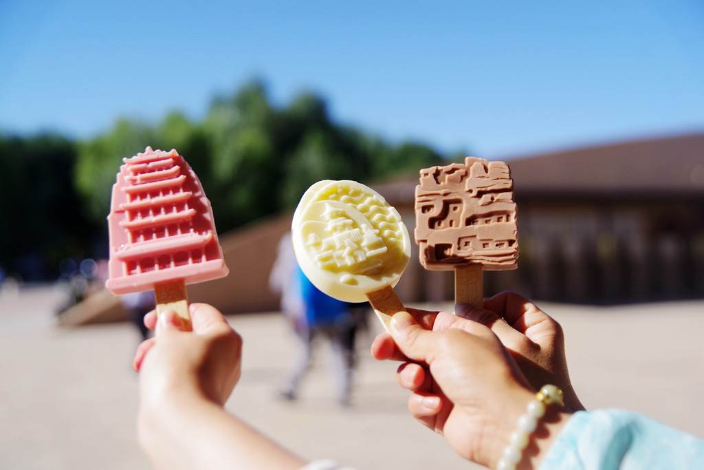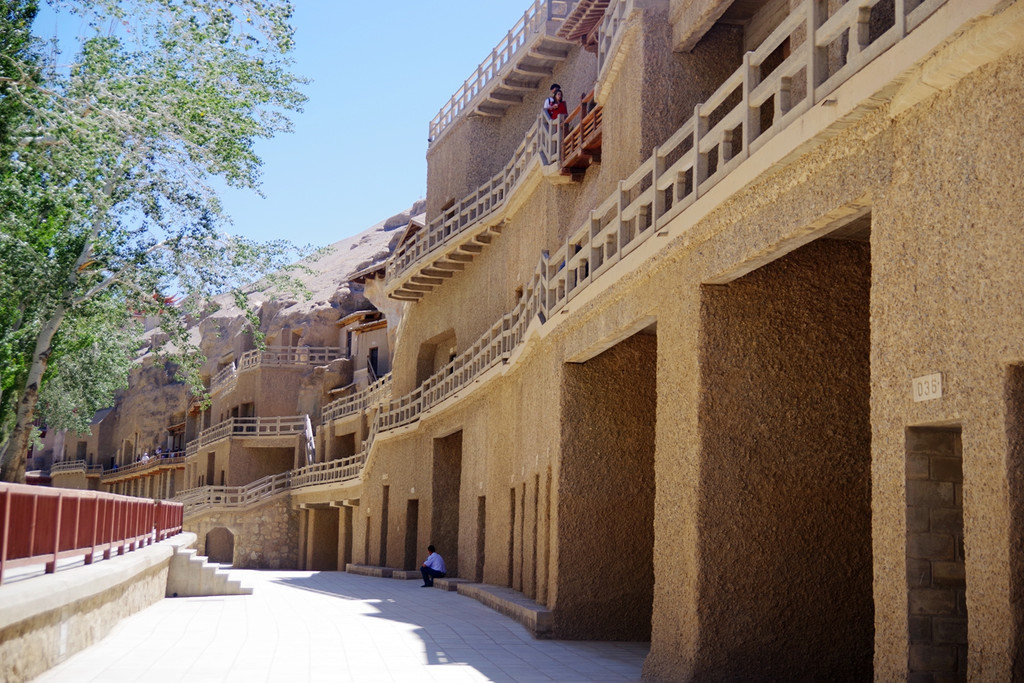 13点20左右到了莫高窟,天气非常炎热,而且更加是人山人海。在自助取票机取了票,我以为要等到时间准点进去,咨询了工作人员,直接进去就是了。