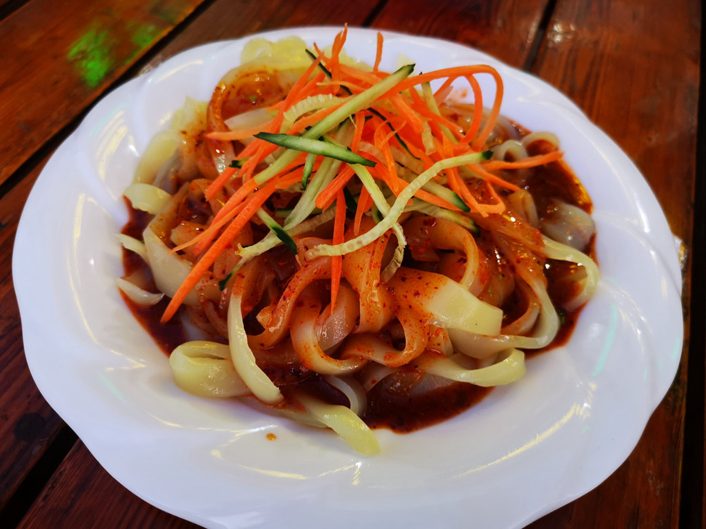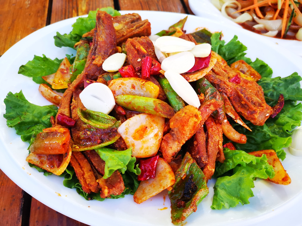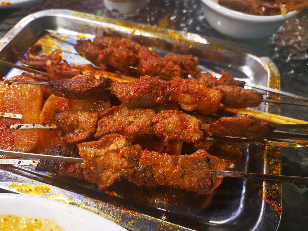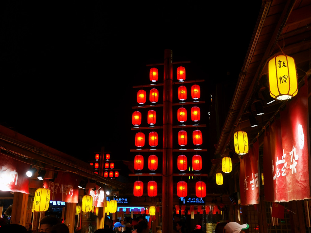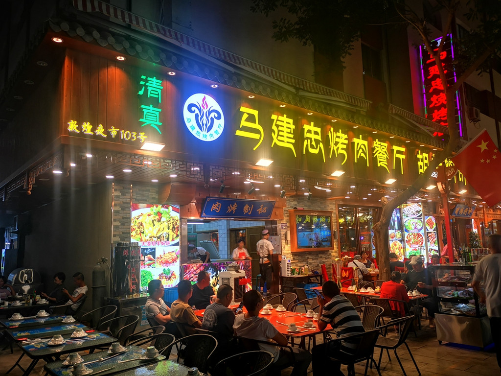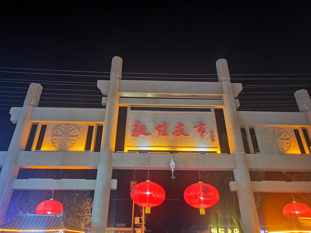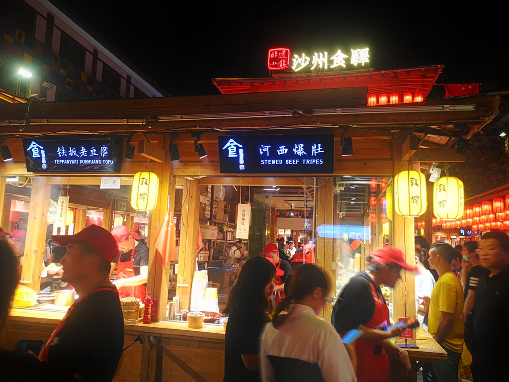 演出大概一个半小时结束,我们在 敦煌 入住两晚的 敦煌 国际大酒店离著名的沙洲夜市不远,这几天我们早习惯了晚上10点吃晚餐这回事,所以直接开车到了沙洲夜市。夜市很热闹,我们也懒得到处找,就在门口第一家店坐下点餐吃饭。