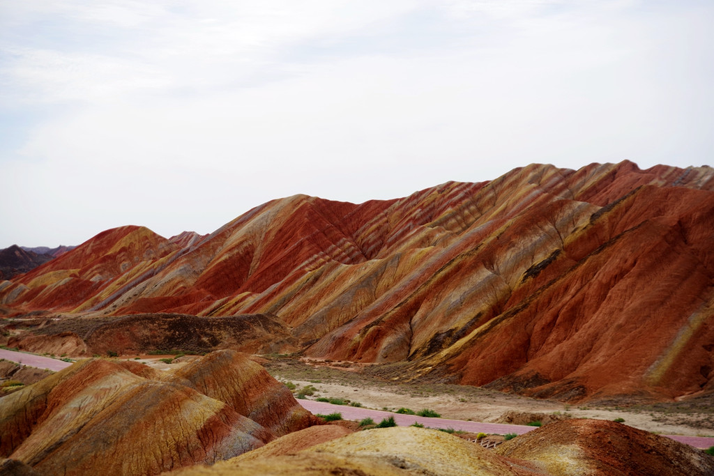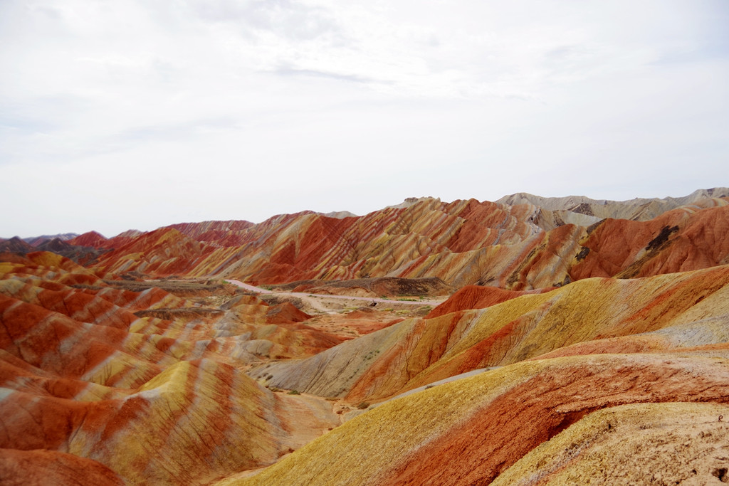 实际上我们酒店的大门就对着丹霞景区停车场出口,不过为了后面行程不紧张,我们还是先退房开车进的景区停车场。早上8:30到的景区,人不算多,我们计划的是11点离开。观光车要停四个站,我们在游玩第二站就打听了第三站步行时间最长,景色和前面差不多,最美是第四站,所以我们在第二站坐车直接到的第四站下车。如果小伙伴们时间充足,还是可以四站都游玩的哈。之前去过 贵州 赤水 的丹霞地貌,不过 张掖 这里果然是七彩的!