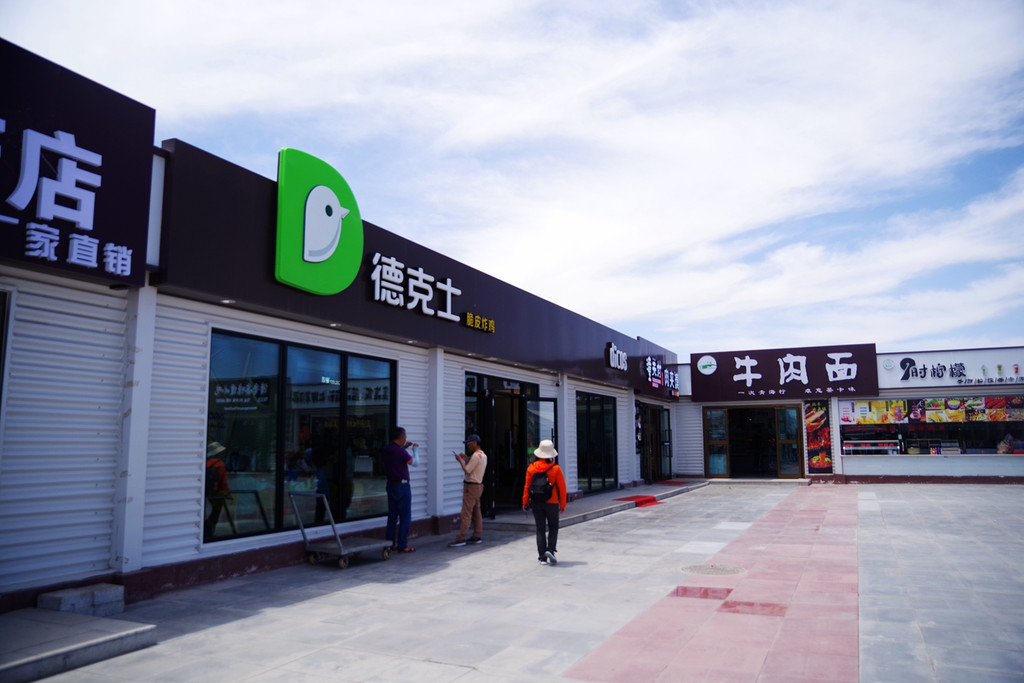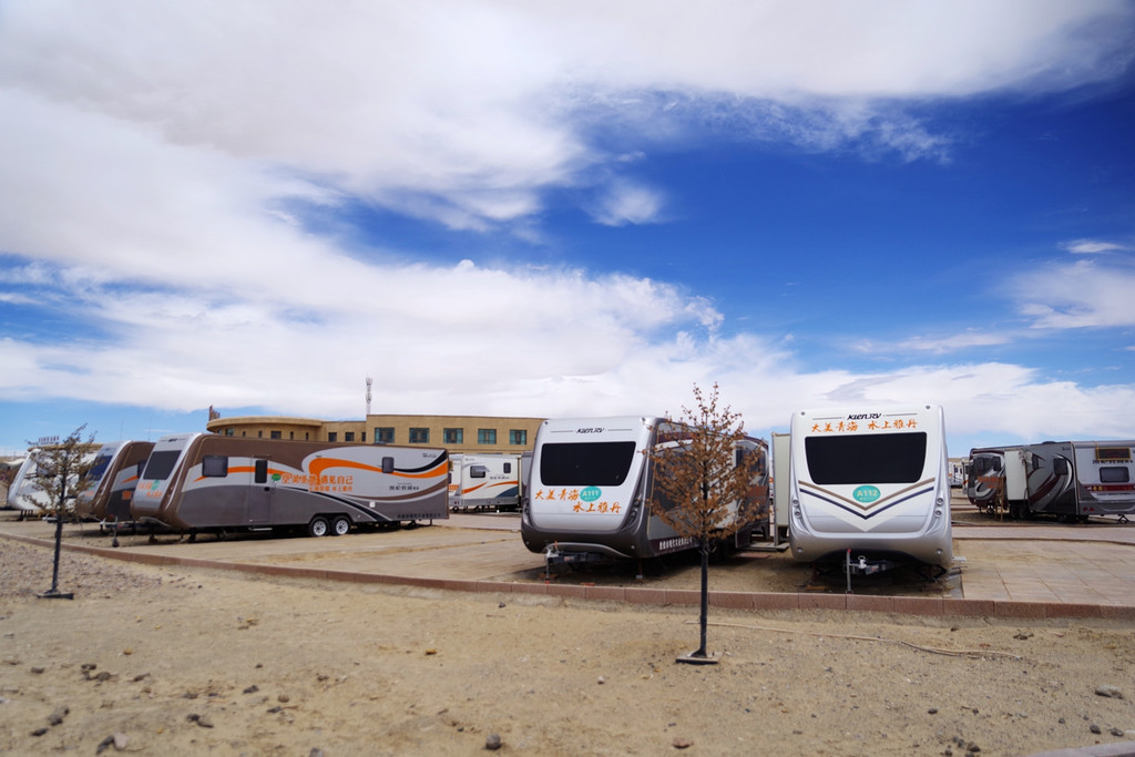 到了现场,看到了酒店和房车住宿区,在景区里面,要检票进入。虽然是景区里孤零零一个酒店,但是酒店对面就是一个很大的美食城,所以我一直说这条线路上吃饭是你完全不需要担心的事情!