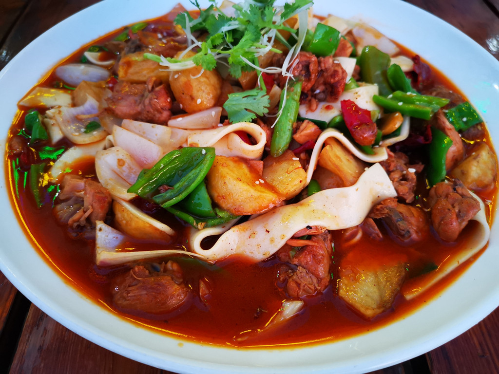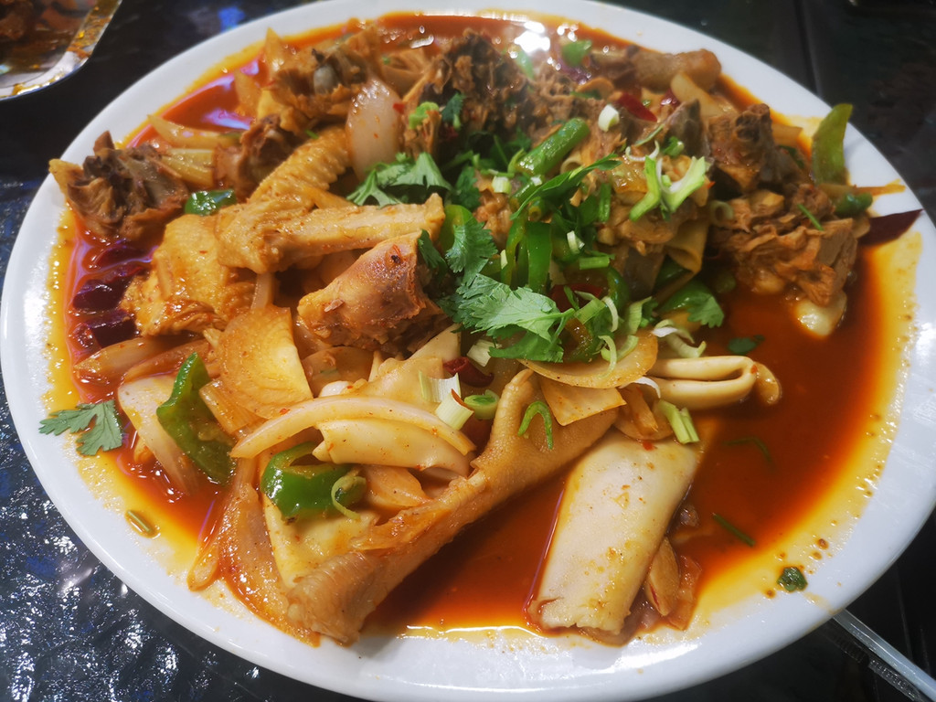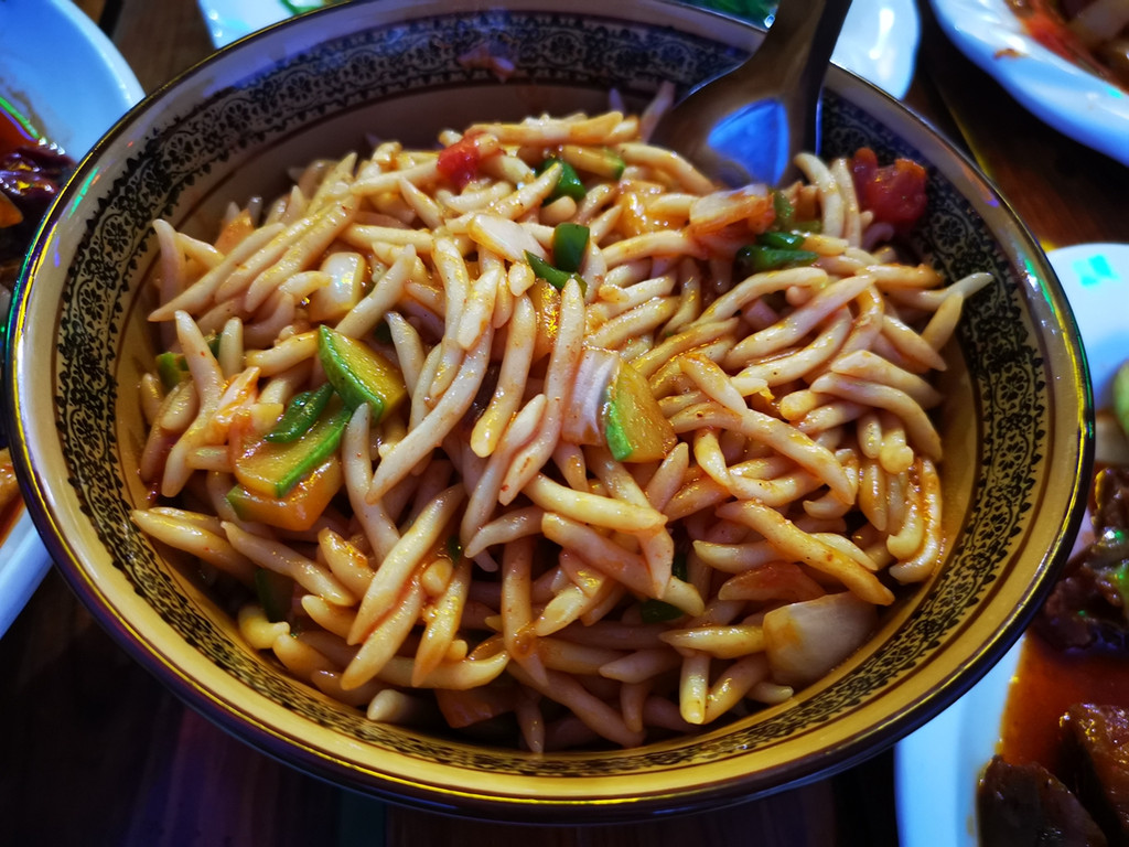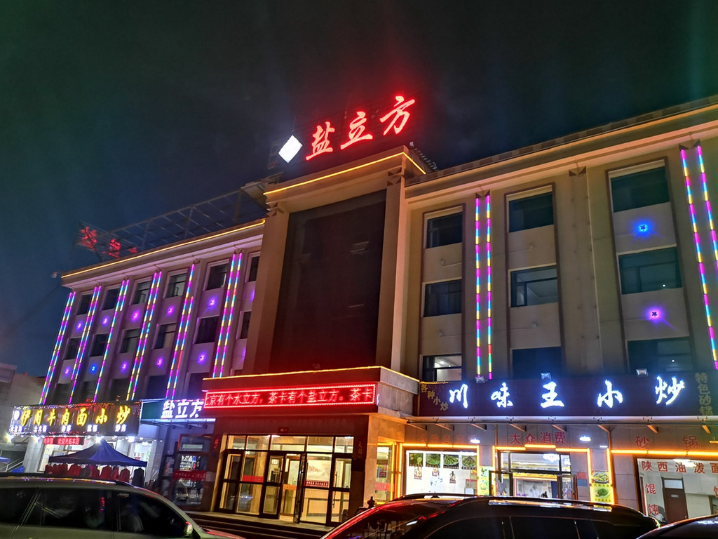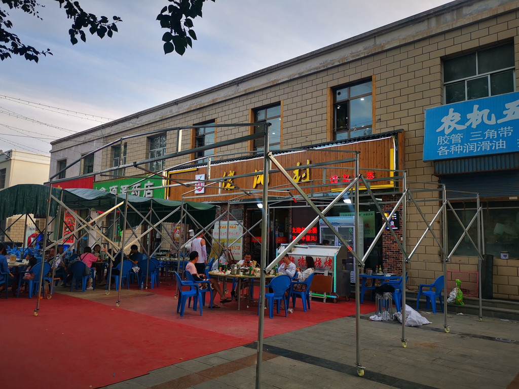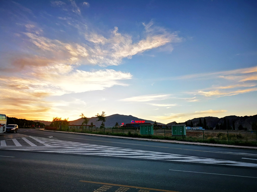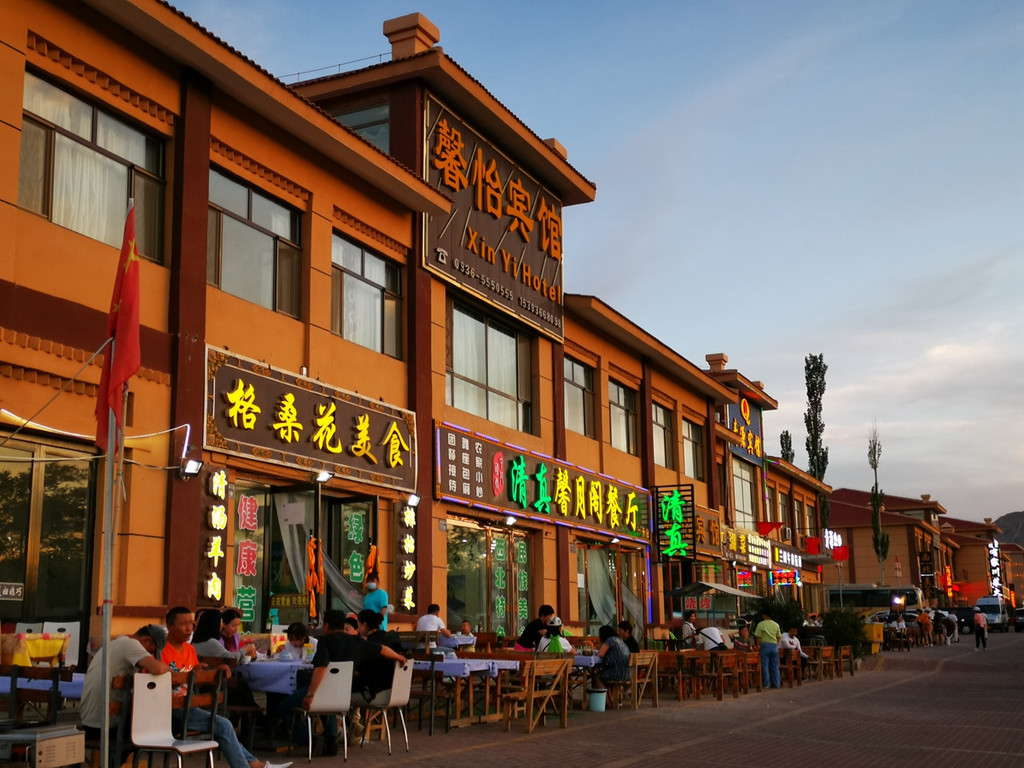 18点左右离开嘉峪关,晚上20点30到达 张掖 丹霞景区。我们定的酒店,丹霞明珠酒店就在景区门口,实际上景区门口还有大片商业区,各种宾馆、餐馆云集,正好我们网上搜到一家排名第一的 西北 菜也在这里,就先吃饭再入住。