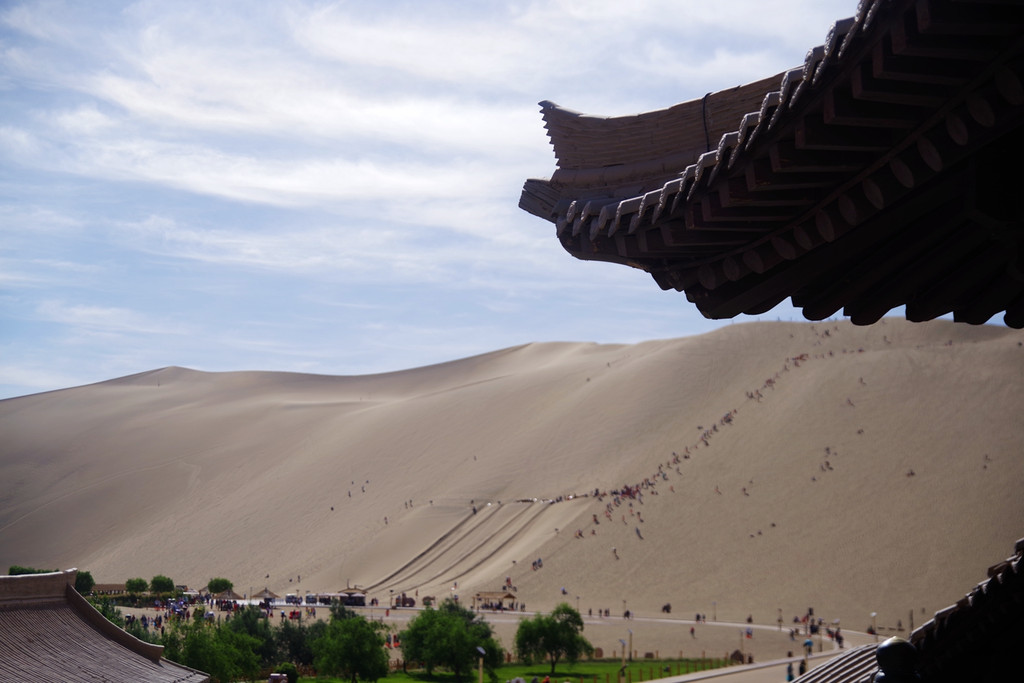 早上人已经很多了,想找个好角度拍照几乎不可能,我们也放弃了爬山,所以也没拍到月牙泉全貌。
