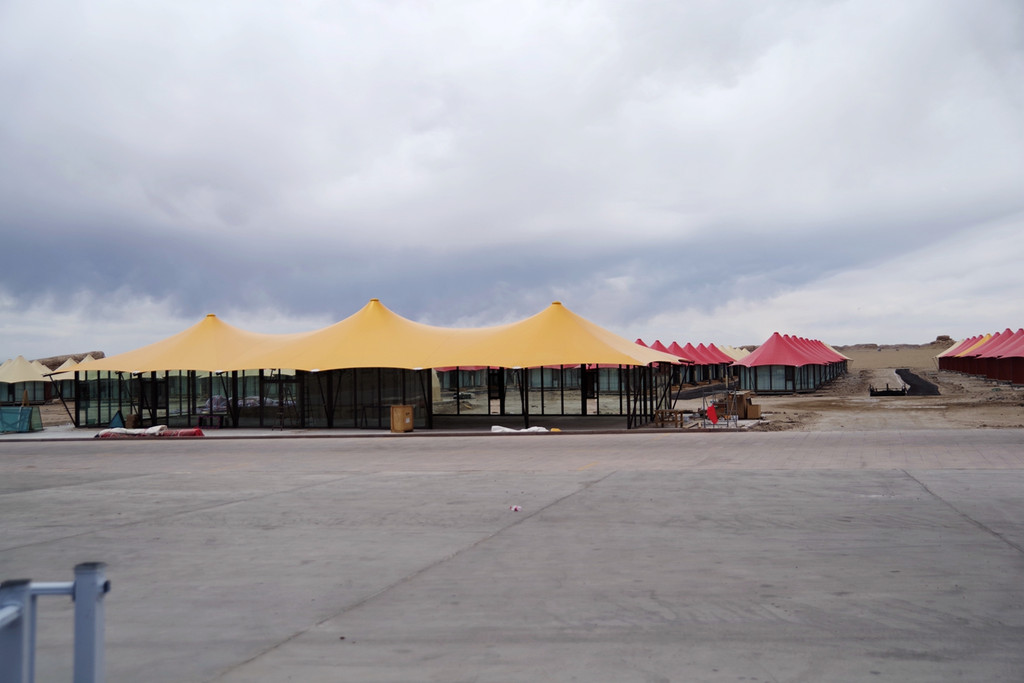 在酒店对面,现场才看到,一个全新的帐篷酒店基本上已经修好了,房间里的床等设施 都安 装到位了,而且现场可以看到这篇区域很大,房间很多,我预估在8月份说不定这个新的帐篷酒店就可以启用了,这个信息及时提供给小伙伴哈。