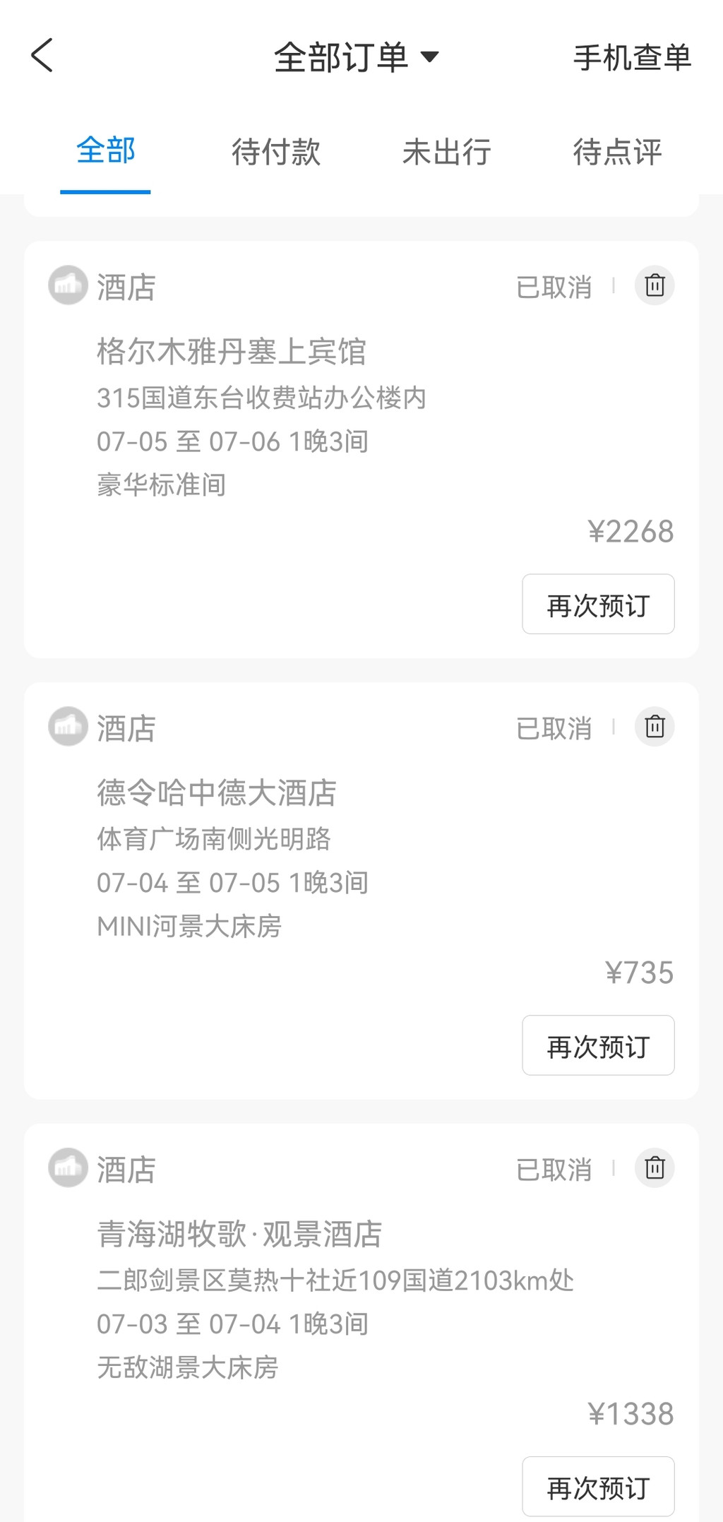 我们选择的是D7晚上23点 西宁 飞回 成都 的航班,所以最后一天不需要选择住宿。