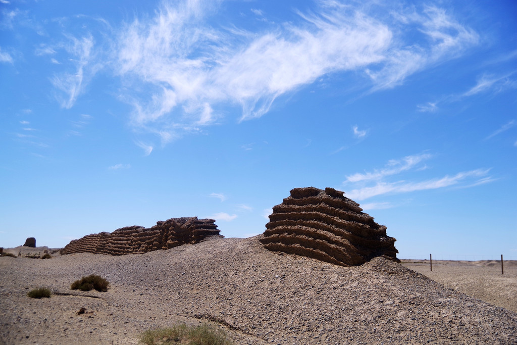 玉门 关遗址本身是只有一个土城而已,但是买的票还包含汉长城遗址和 大方 盘城遗址,这两个遗址分别在 玉门 关的两个方向。我们到的时候是下午3点15左右,然后等着16点的观光车出发,这里和阳关的人比莫高窟简直少多了,先到汉长城遗址,15分钟游览即可,再返回 玉门 关继续前往 大方 盘城遗址,比汉长城远很多,整个过程回来已经是17:20了。