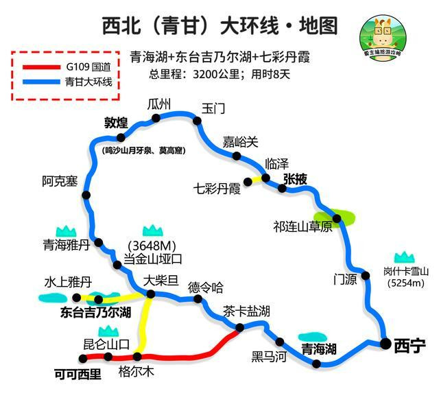 2、这条环线上有海拔在3800米左右的地方(只是经过而已), 青海 段的海拔一般也在3000米左右,每个人体质不同,只是我们基本上没出现过什么高反的反应,往 甘肃 走,海拔就很低了哈。