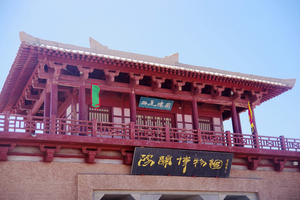 如果你只是买了票就直接进去打卡也许时间上会节约很多,我们进去正好被告知在某些时间段有导游带领讲解游览,正好11:15有一场,于是大概30多人一起跟着导游,先进博物馆听讲解,再经过阳关城,最后再去坐观光车,整个过程差不多45分钟。阳关城里有通关文牒,我们也才知道了“关照”一次的出处,你买了之后,在出关的时候有一个古装装扮的卫兵问你西出阳关所谓何事,一问一答还是蛮有意思的。