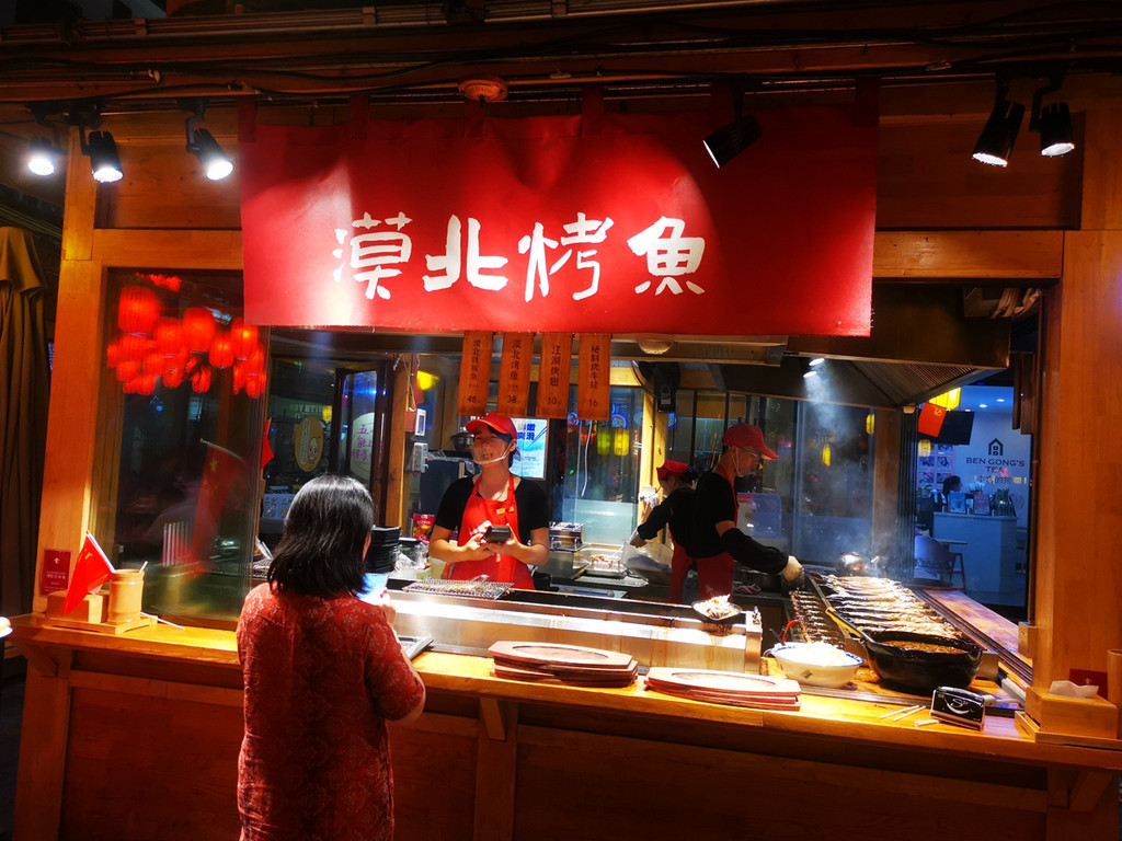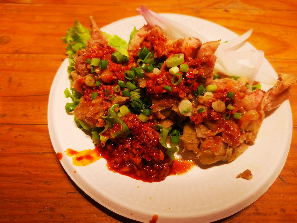 这晚我们没去去门口那一长串的餐馆,来到了夜市中间的各种小吃区,美食也很多的!