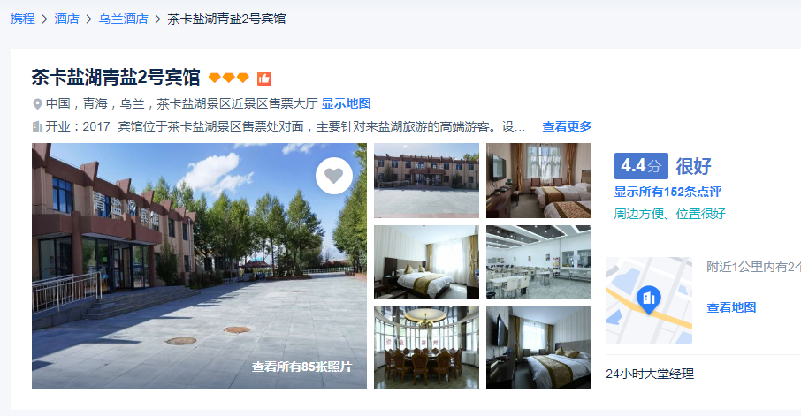 这里一个重点提示,天空壹号景区门口就有一个酒店,小伙伴们图片上看得清清楚楚:茶卡天空壹号大酒店