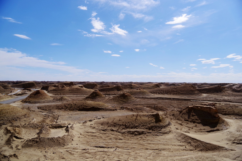 实际上如果输入景点,导航是指向的南八仙魔鬼城,其实所谓魔鬼城就是雅丹地貌而已,而这沿途基本上全是这种地貌,你可以随时停车找一座可以爬上去的小山坡,看到壮观的雅丹美景,我们沿途找了几处地方,都很美,随便用无人机拍拍都是很震撼的!