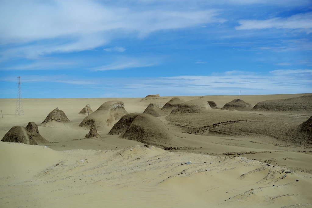而且我在导航地图看线路的时候,觉得似乎往返3个小时足够了,既然是两个土堆,耽误一两个小时足够,下午回来再去月牙泉即可。只是头一天我们在莫高窟被热晕了,有小伙伴更是直接又中暑的反应,所以我们决定下午回来先休息,凉快点再去月牙泉。谁知道,就这两个“土堆”,我们早上9点过出门,晚上差不多9点才回来!