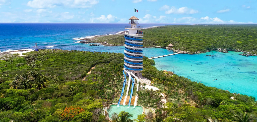 谢哈自然生态水上乐园坐落于墨西哥坎昆与玛雅海岸之间,踏入瞬间就像闯入了被自然环抱的欢乐天地。你对“玩水”的所有想象,都能在这里实现!想要追求刺激?可别错过40米高的标志性观景灯塔,它是玛雅海岸唯一可360°全景俯瞰的制高点,从塔顶高速盘旋近10圈后冲入天然水池,体验刺激的“云端坠落”!偏爱浪漫?换上浮潜装备扎进“天然水族箱”般的水域,近距离邂逅丰富多样的海洋生物!只有玩过的人才知道,原来水上乐园也能这么“野”!