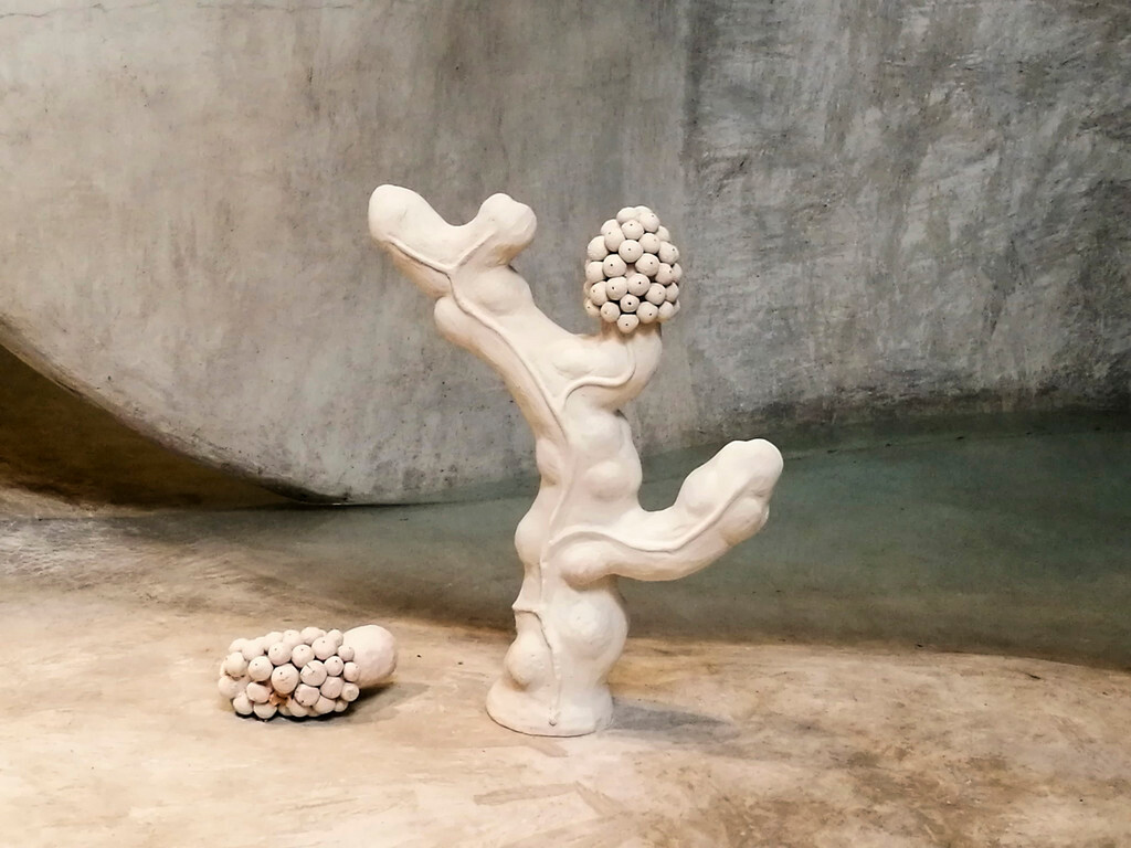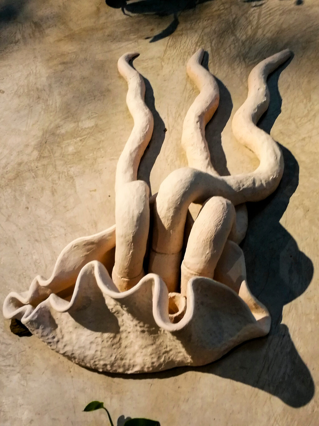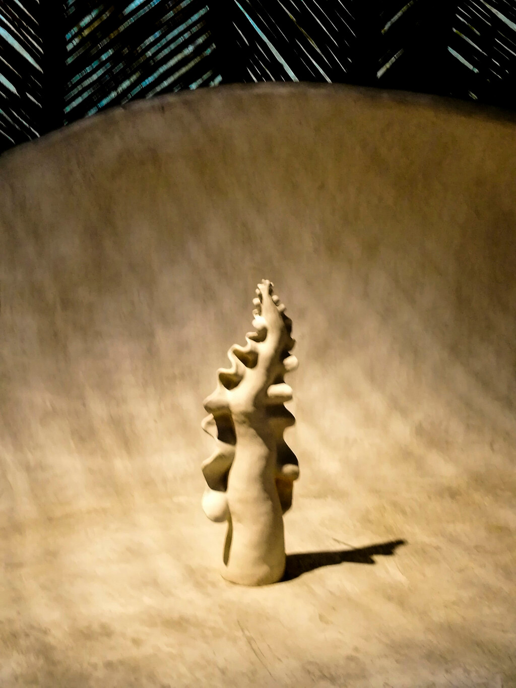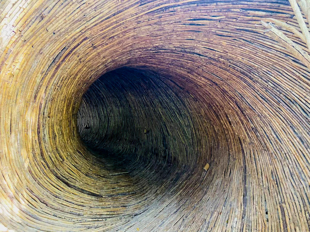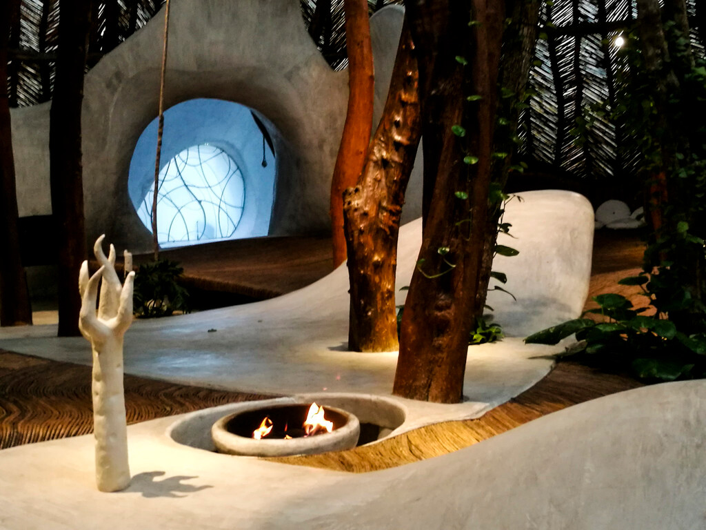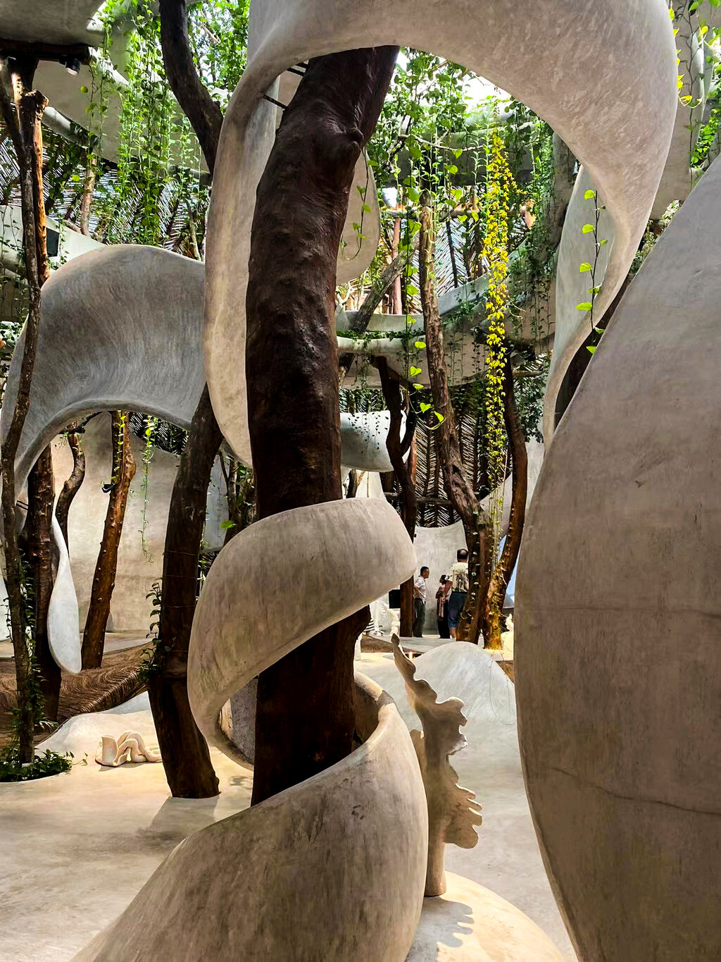 艺术展处在路旁的丛林中,门前烧有几堆火,烟雾缭绕,令人感觉颇有几分神秘。进入里面,只见藤编的过道、廊桥、窗棂等高低错落有致,别具一格;所示展品,形态各异,到底寓意着什么,因时间关系,我们也不得而知。总而言之,展览极具特色,有点意思,很有看头。
