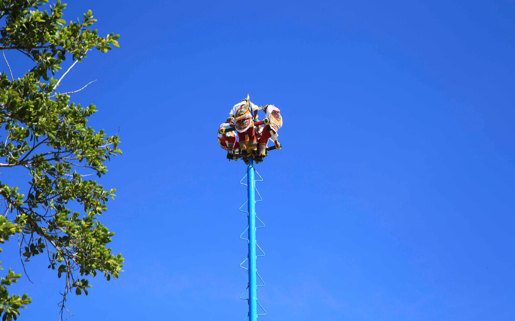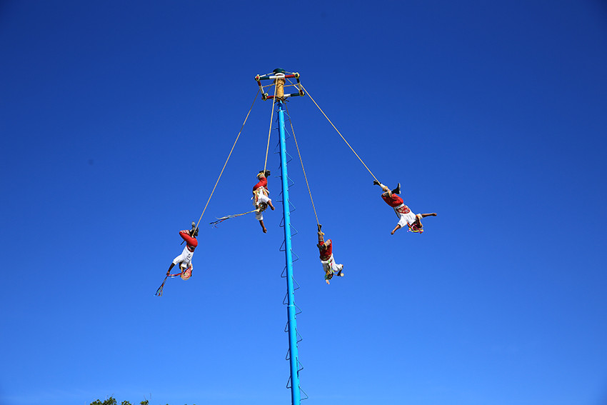 土著们穿着色彩鲜艳的民族服装在招徕游客