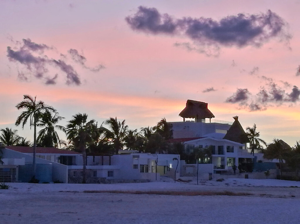 回到下榻处天色渐晚,走到沙滩上看见景色不错,随手又拍了几张黄昏照,才回房间休息。