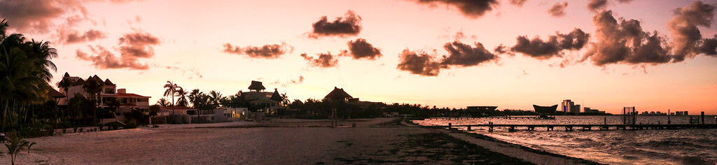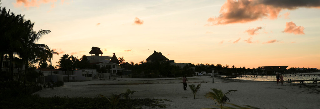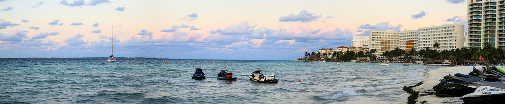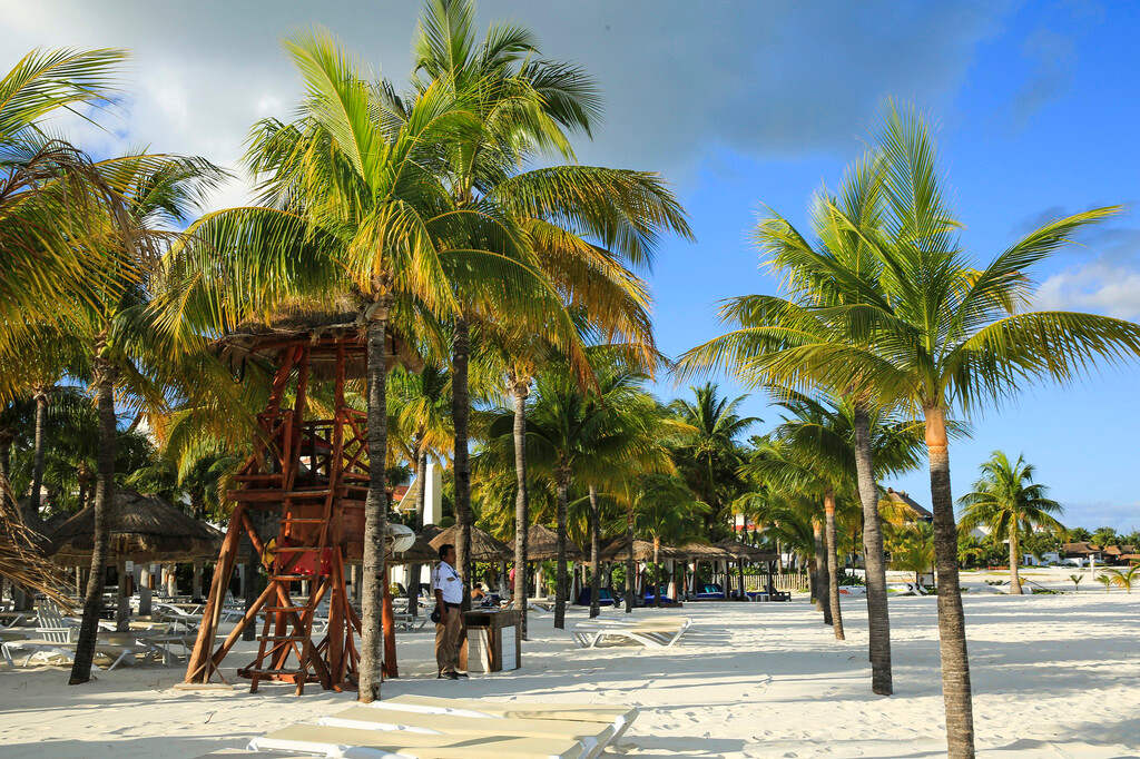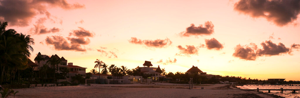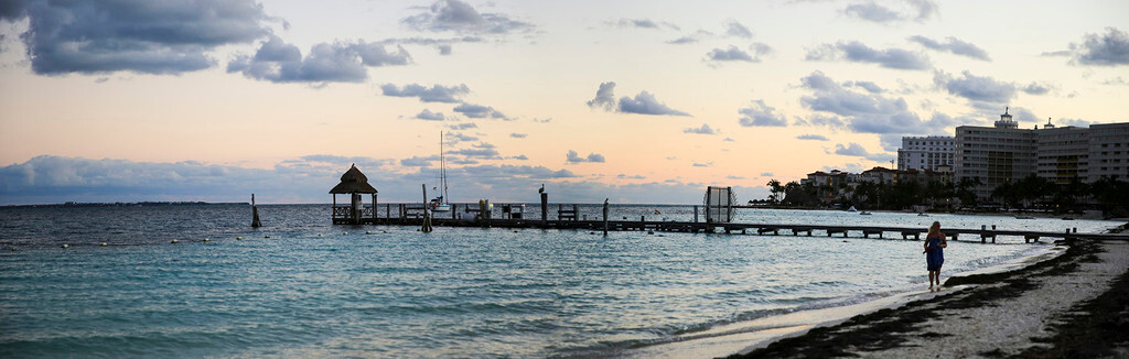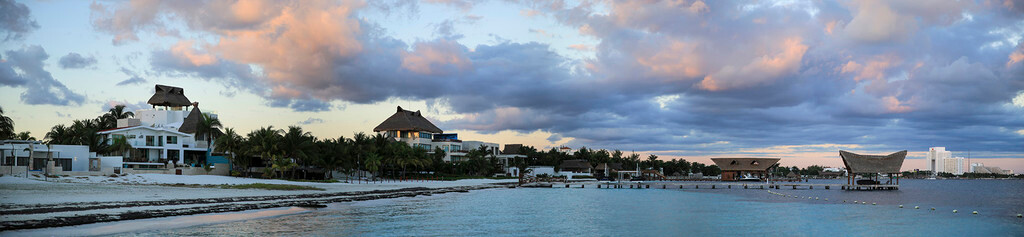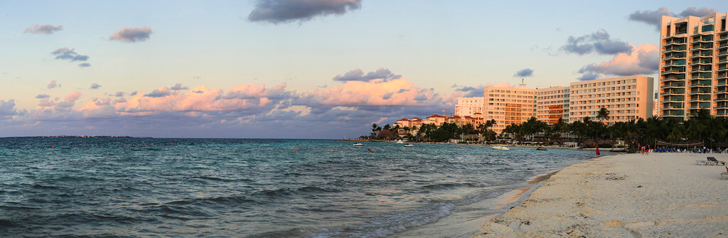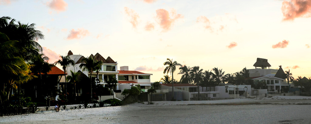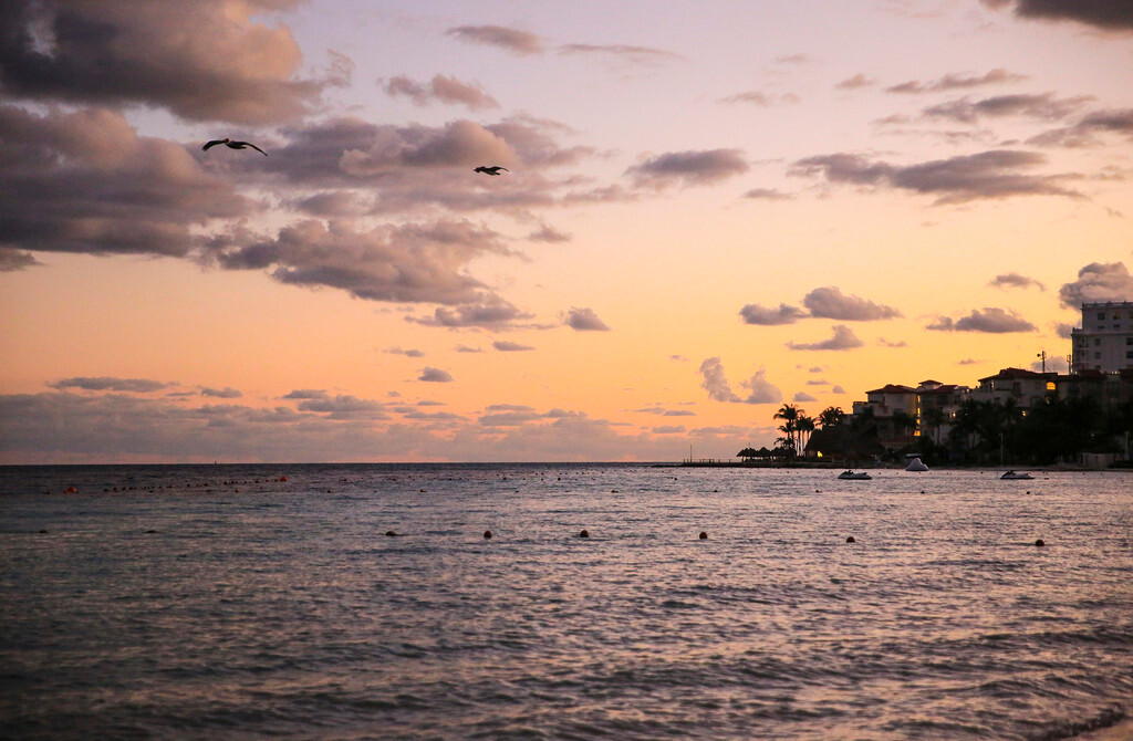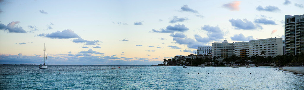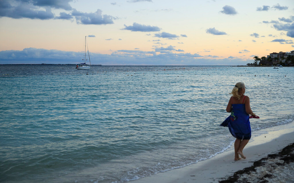 一大早我们还没吃早餐,就来到酒店后面的海滩上。天刚拂晓,朝霞映红了半个天空。酒店的清洁工正在打扫卫生,我们则抓紧最后的一点时间,再次享受加勒比海的朝阳,呼吸加勒比海的新鲜空气,漫步沙滩,一边欣赏美丽的风景,一边从容的尽情拍照。