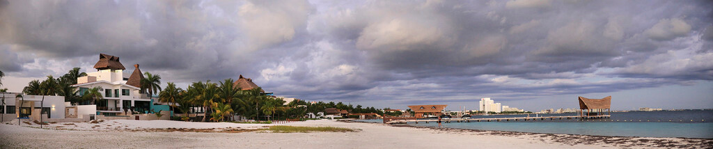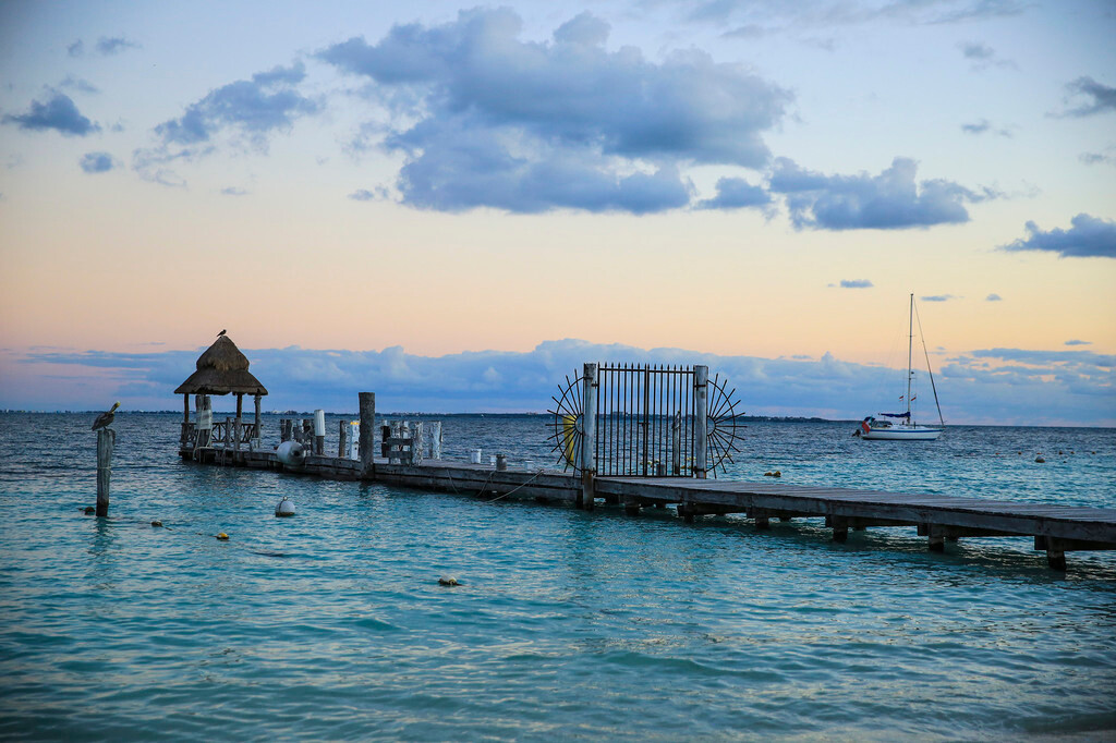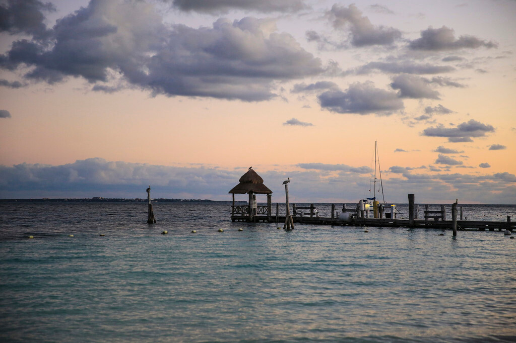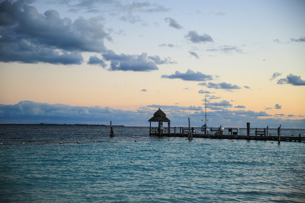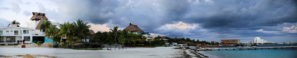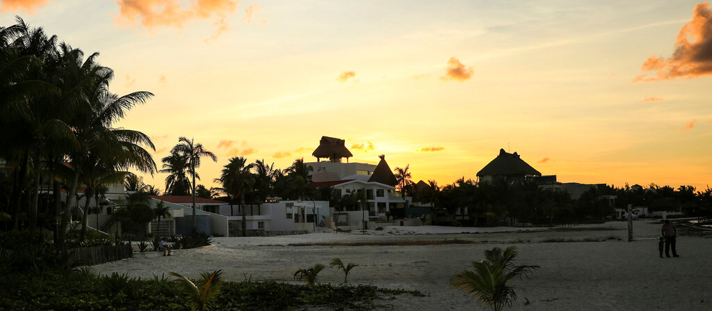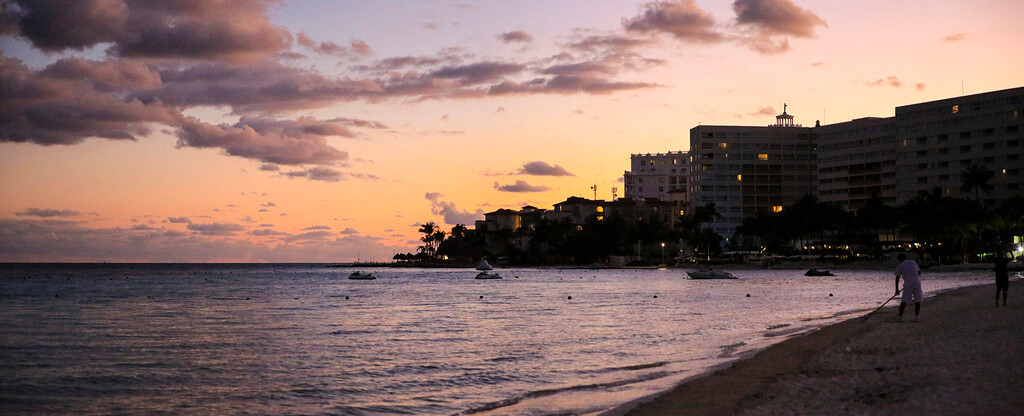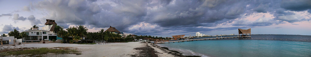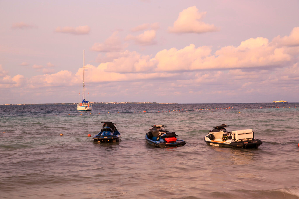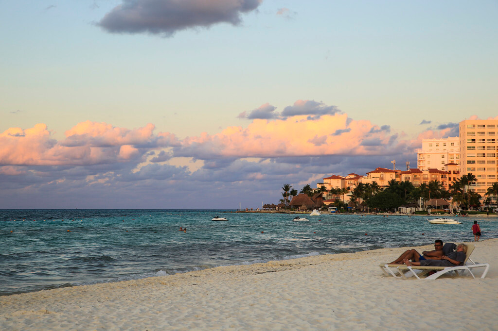 一大早我们还没吃早餐,就来到酒店后面的海滩上。天刚拂晓,朝霞映红了半个天空。酒店的清洁工正在打扫卫生,我们则抓紧最后的一点时间,再次享受加勒比海的朝阳,呼吸加勒比海的新鲜空气,漫步沙滩,一边欣赏美丽的风景,一边从容的尽情拍照。