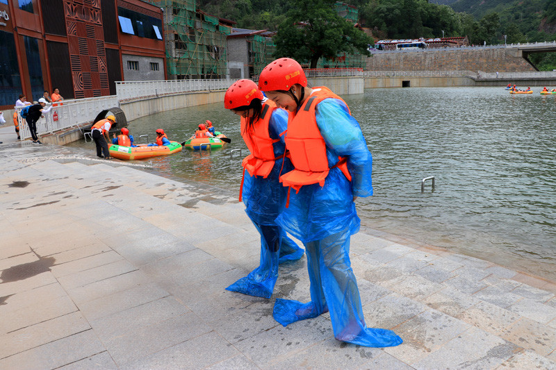 漂流结束后,与笔者同行的两个小伙伴从皮筏上下来之后,其湿身的装扮像极了两个“水怪”,引得众人大笑,就连她们自己都乐不开支。