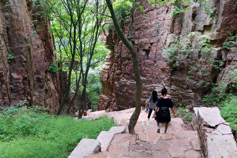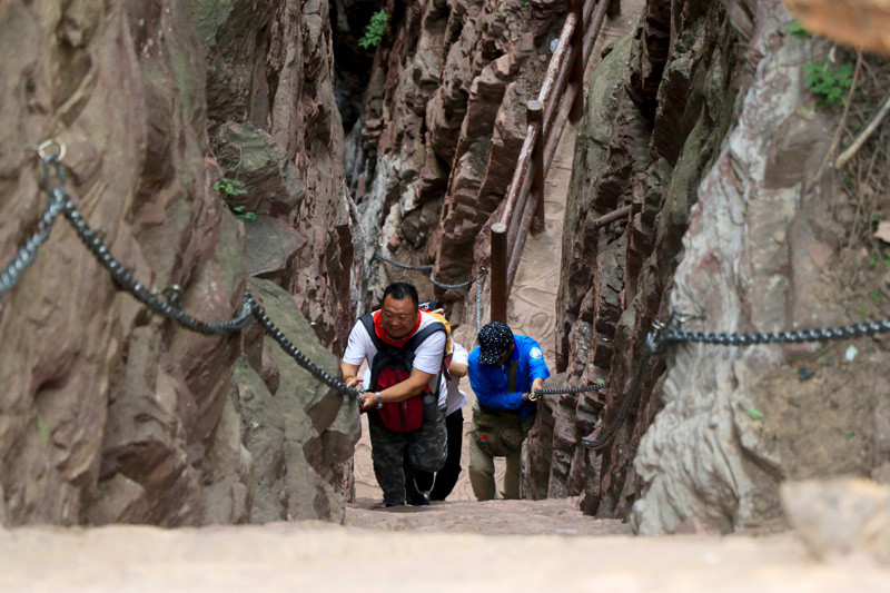 在即将达到仙鸿桥时,看到峡谷中有几个通过瘦人谷攀爬上来的旅行社人员。笔者当时很庆幸,没有选择走瘦人峡,要是走了瘦人峡,绝对能减肥。因为当时旅行社的这几个人上来之后,累得气喘吁吁,其中一个资深美女直呼“再也不爬瘦人谷了,太累,太险”。