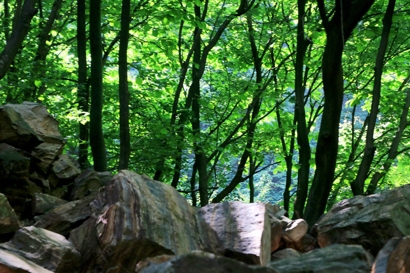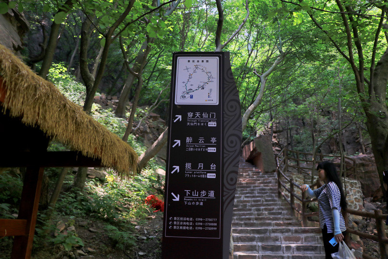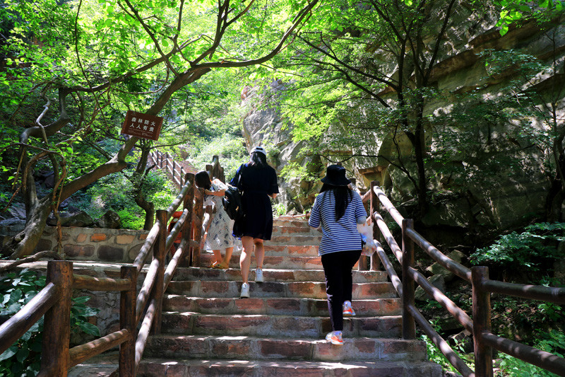 在景区小憩之后,上午10点,笔者一行选择从北线爬山,南线下山。沿着原汁原味的路边石材铺成的山路,拾级而上,清幽的空气让人沉醉,绿荫遮盖的台阶,透着丝丝凉意,让人心旷神怡。