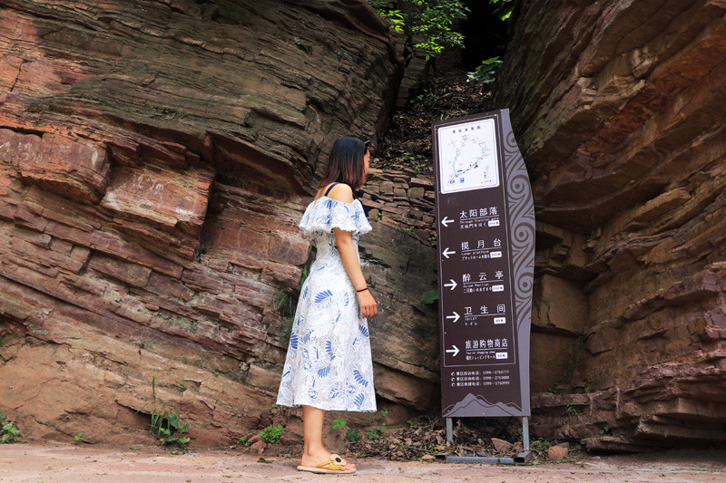 这是一张思想斗争,意见不一致的照片。负责视频拍摄的小姑娘站在引导牌前思考,到底是先去太阳部落,还是先看醉云亭。