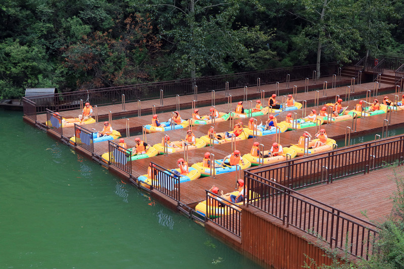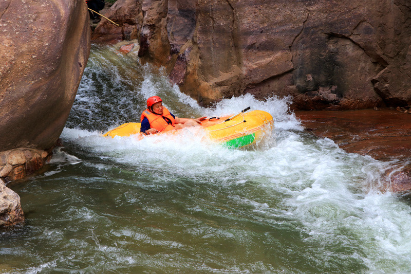 仙门山的漂流是一静一动相搭配。静时,游客泛舟于绿水白云间,格外宁静、清幽;动时,破浪击水漂流而下,过急滩,瞬间人舟淹没在波涛翻涌的河水中,惊心动魄。用一位游客的话来说,那就是在仰韶仙门山玩漂流,得劲。