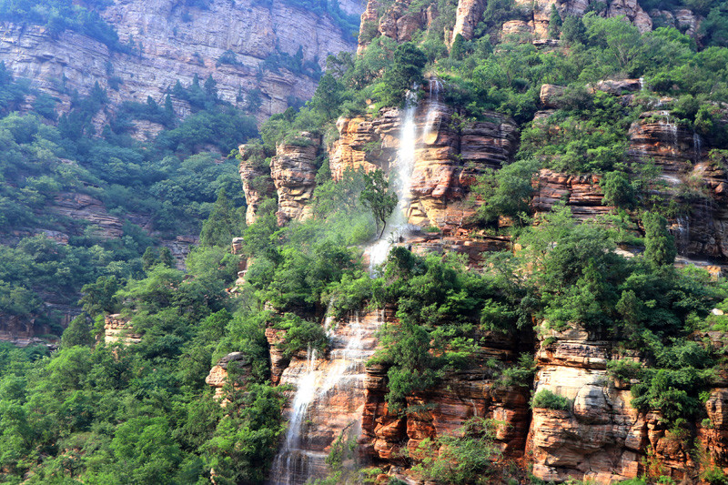 尤其是在页岩叠加成山的悬崖上,泉水自山腰中某处神秘出现,沿山势飞落,水雾蒙蒙,似白绸飘然而下,让人驻足而观,思绪翩翩:此处可有洞府,可藏神仙?