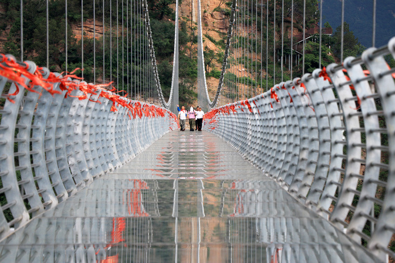 不过,他们最终也在工作人员的催促下,快速地通过了仙鸿桥。毕竟安全第一,不能拿安全开玩笑。最让人佩服的是,面对工作人员的催促,他们几个人虽然步伐加快,但在通过仙鸿桥时,还“雄赳赳气昂昂”地唱起了红歌。
