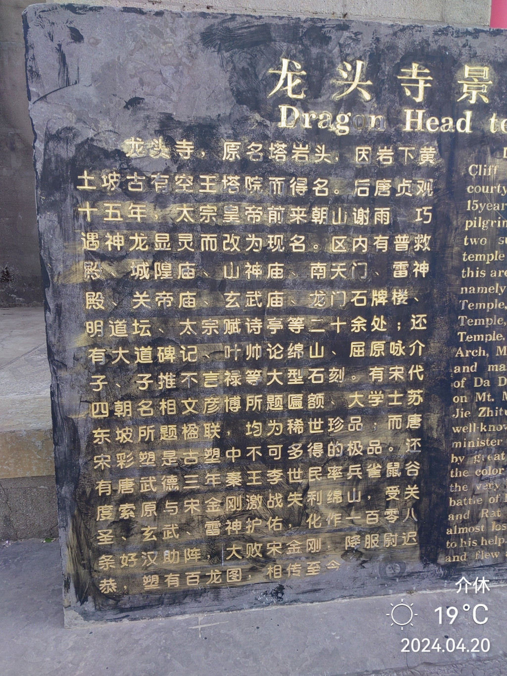 在龙头寺游览区的山上 还有龙脊岭、唐营游览区、李姑岩游览区,该游览区主要展现李唐军事文化和道家养生文化,有龙抬头、龙涎泉、龙须瀑、介子推母子巨型雕像、真武殿、八卦园、仰止亭等二十余处景点。子推母子塑像生动传神,再现了当年介子推偕母归隐绵山的情景。绵山唐营是国内唯一留存的唐代古营。督战台、插旗石等历史遗迹,讲述着秦王李世民当年布兵督战的故事。绵山的灵气吸引了众多的仙家、圣人,仅此处就有伯子常、彭祖、子乔、华佗、汉钟离、吕洞宾、陈抟等历代古贤的修行洞十余处,是中国最古老的养生地。养生源用碑石图文对养生功法做了简明生动的介绍。