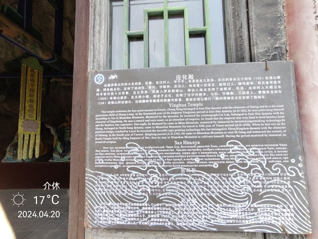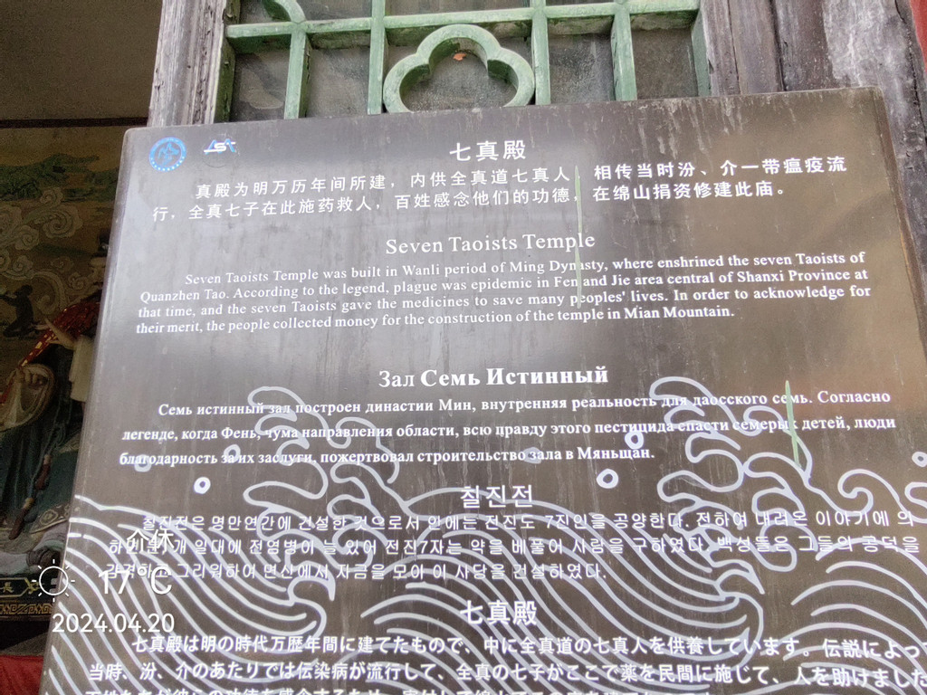 北魏时期寇谦之,字辅真,少好仙道,后随方士入绵山学道修炼。据称他从太上老君处受天师道书,并广播道术。一日,他在此接太上老君所授《云笈七签》一部。此后,作教礼教义,用以规范庙观管理。寇谦之为感谢太上老君授书,遂在此建亭。