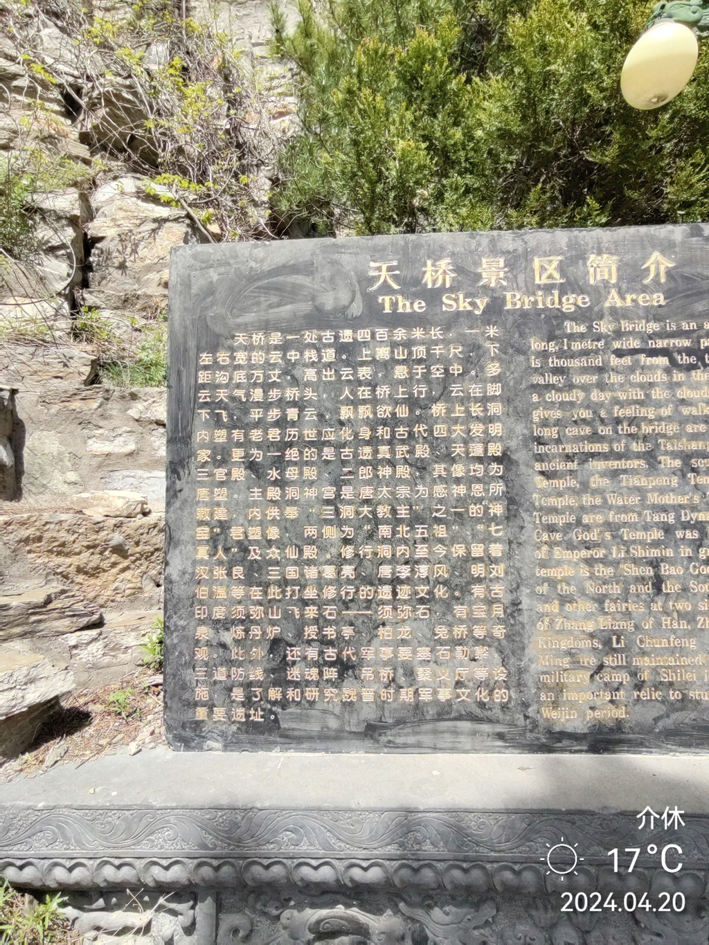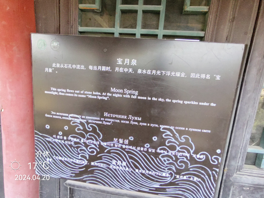 宝月泉 这里还有一块清代碑记,上面记载有关于望峰门的故事。前面有一宝月泉,每到月圆之夜,月光投洒于此,山壁上的泉水会反射出一轮弯月,所以叫宝月泉。