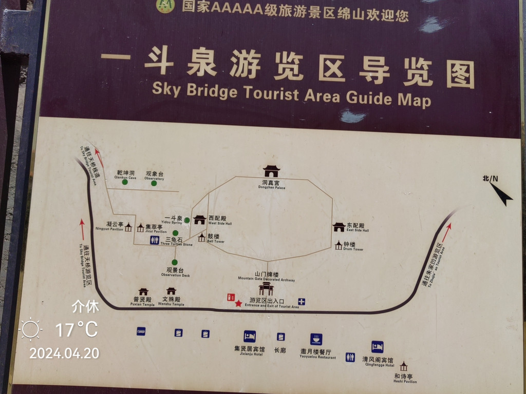一斗泉是一处天然生成的石泉,因仅仅能盛一斗水而得名。传说很久以前绵山缺水,元始天尊云游至此,用拂尘醮东海之水,往绵山洒了几点,绵山便出现了很多泉水,最后一点滴在此处,形成一斗泉。后来这里成为元始天尊的道场,百姓有祷必应。为了感谢神恩,依山而建了洞真宫。本游览区除了众多巍峨壮观的人文景观外,还有象鼻山、鹿桥、固山石等自然景观,承载着很多美丽的传说。