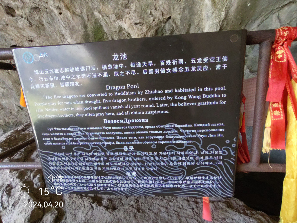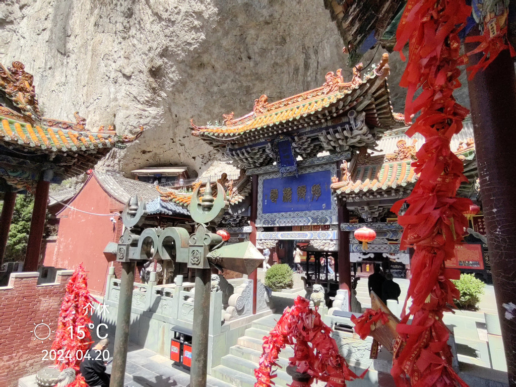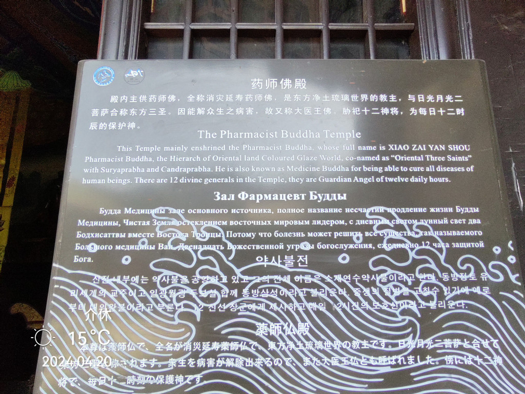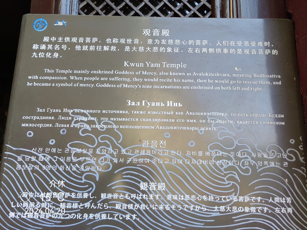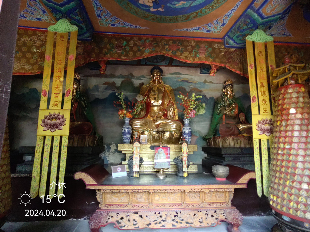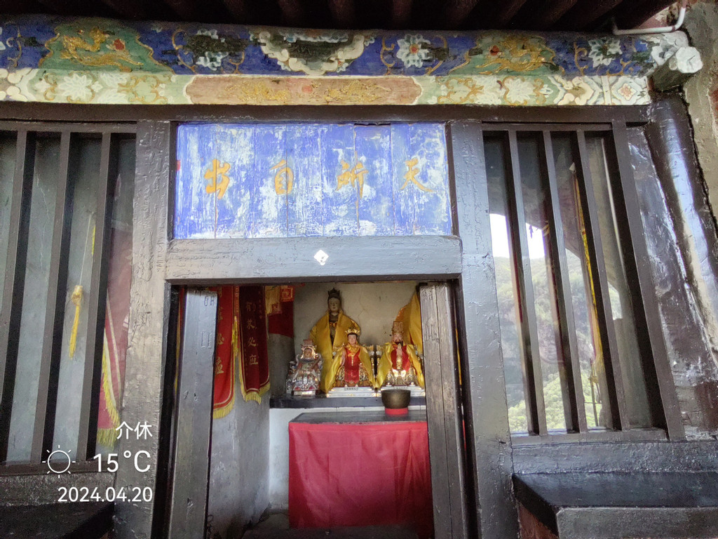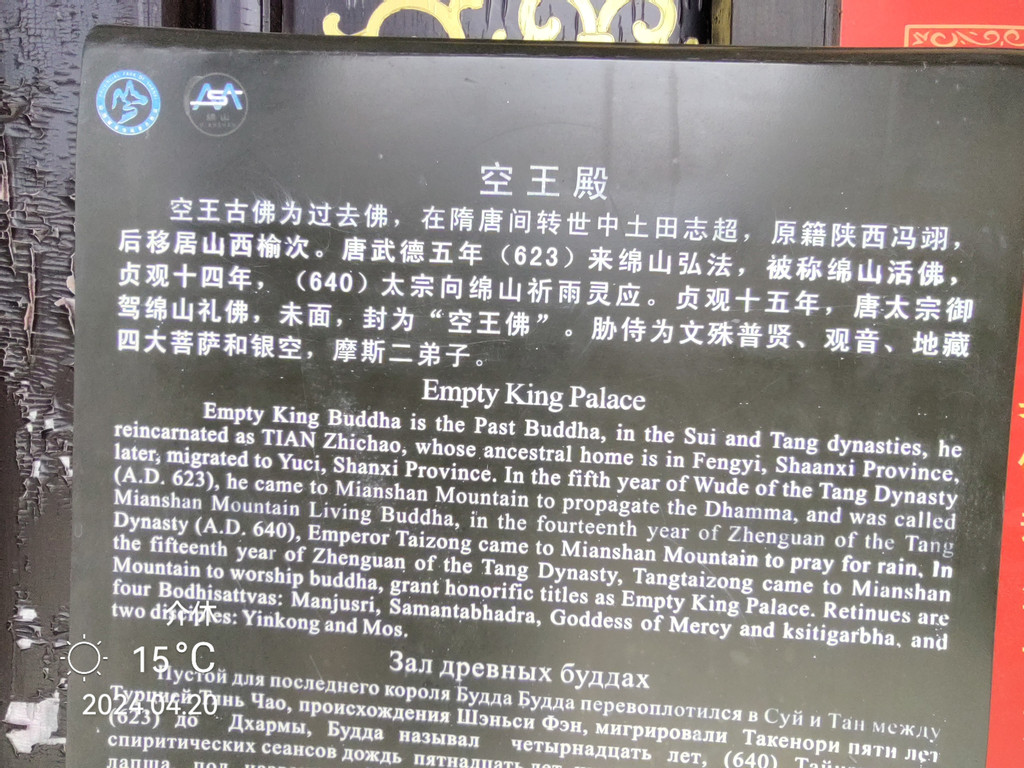 空王宝殿匾后面的蓝色匾系,清光绪三年(1877)皇帝所赐“慈云法雨”御匾。