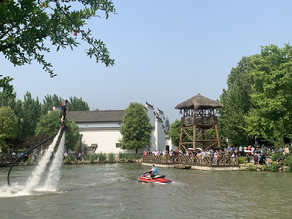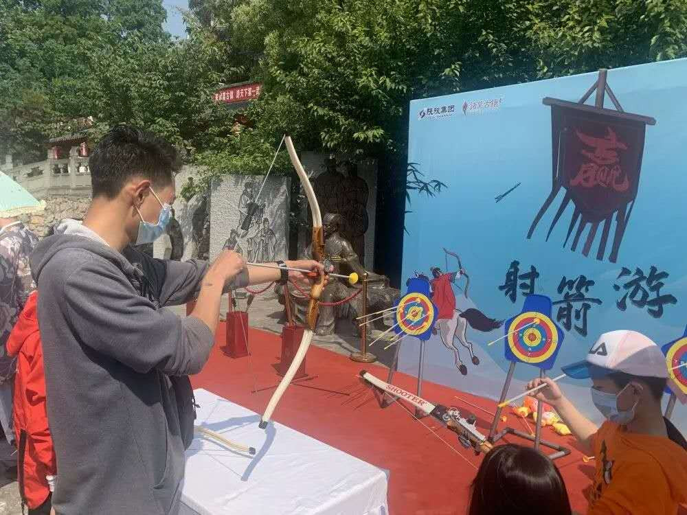 入园后人心的工作人员给我们介绍了五一园区的特色活动,嚯!还真不错,超网红活动水上飞板、网红不倒翁、手工汉服制作、射箭、蹴鞠、滚铁环等等,活动太多,我只记住了前面这几个,更多精彩等你发掘。